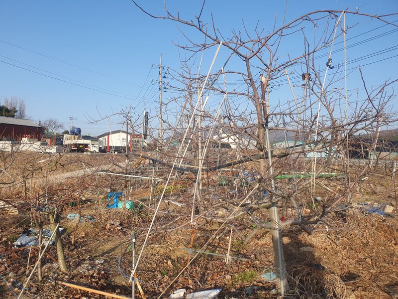 기온이 17도까지 오르기에 14시정도에 가서 17시에 들어왔다 살구 사과 대봉 대추 등의 전지 정리하고 가지를 유인하고 황벽나무 웃가지를 잘라 물끓이기위해 가지고왔다