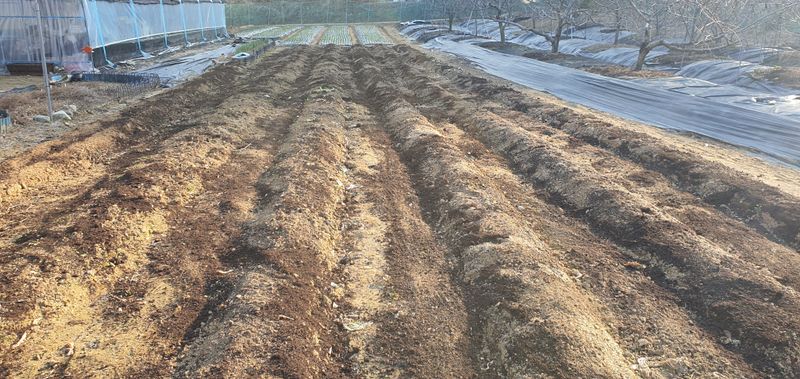 ㆍ김장 밭 :퇴비+석회고토 로터리 작업