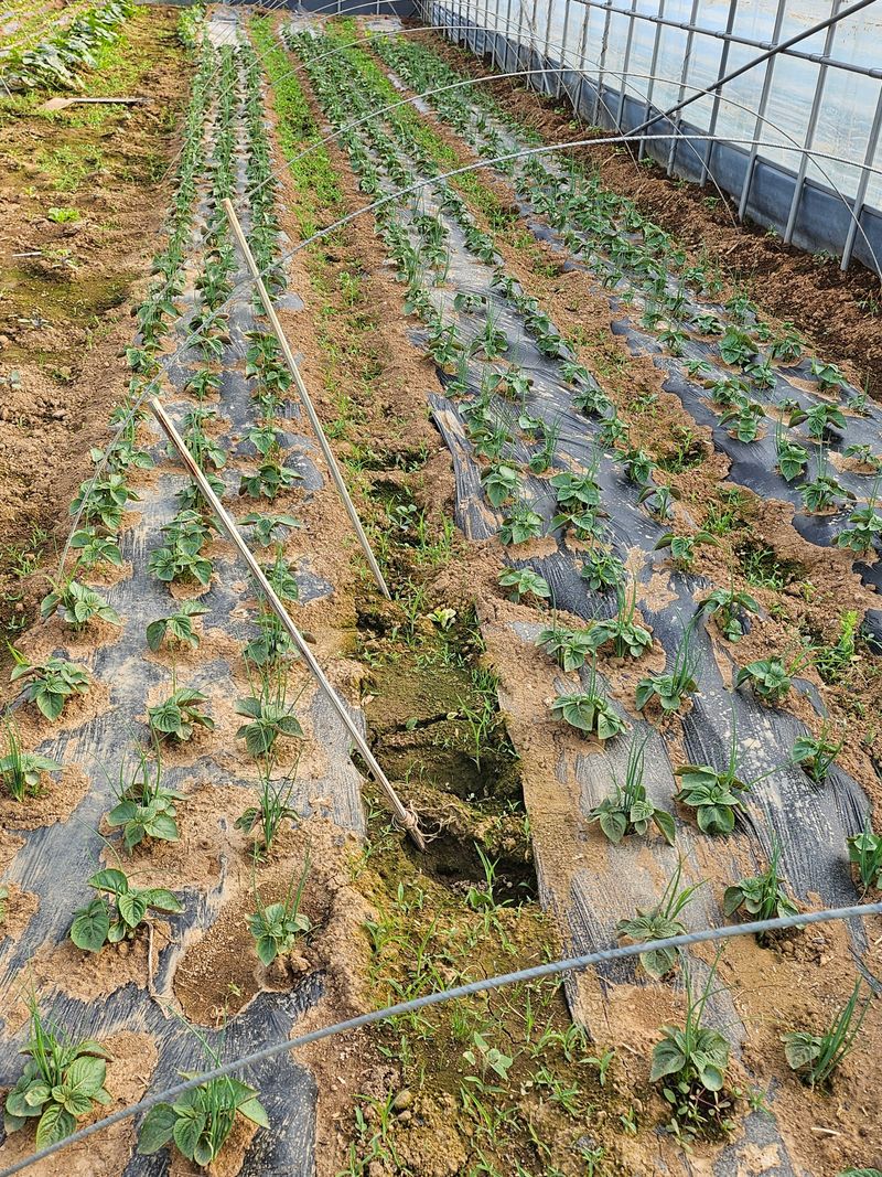 오늘은 비가 온다해서 하우스에 우리가족 먹을꺼리 심기 대파 청양고추 양배추 상추 등등