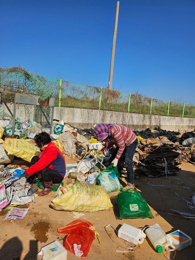 오늘은 부녀회에서 폐농약병 비닐 작업 모두들 고생하셨어요 점심비빔밥 완전 꿀맛