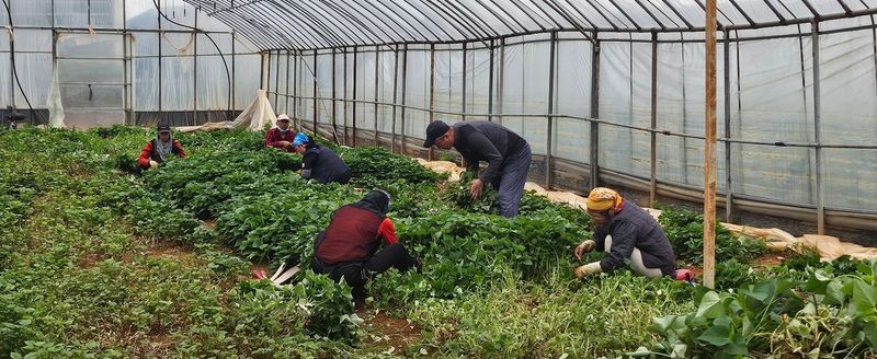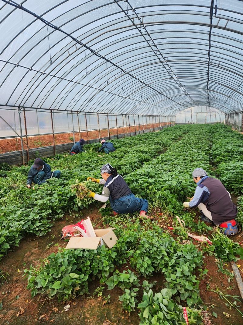 하우스 초당옥수수 살충제 약 고구마순 2명 자르기 고구마 필름 작업