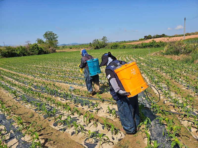 하우스 초당 옥수수 영양제뿌리고 쌀보리 드론방제 산이농협농약 15만정도