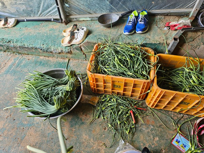 고구마순 작업 형님이랑 둘이 경식 1명 봄 휴무 (치아통증)