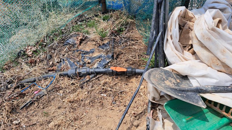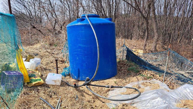 포도밭 관수배관 물대기작업함