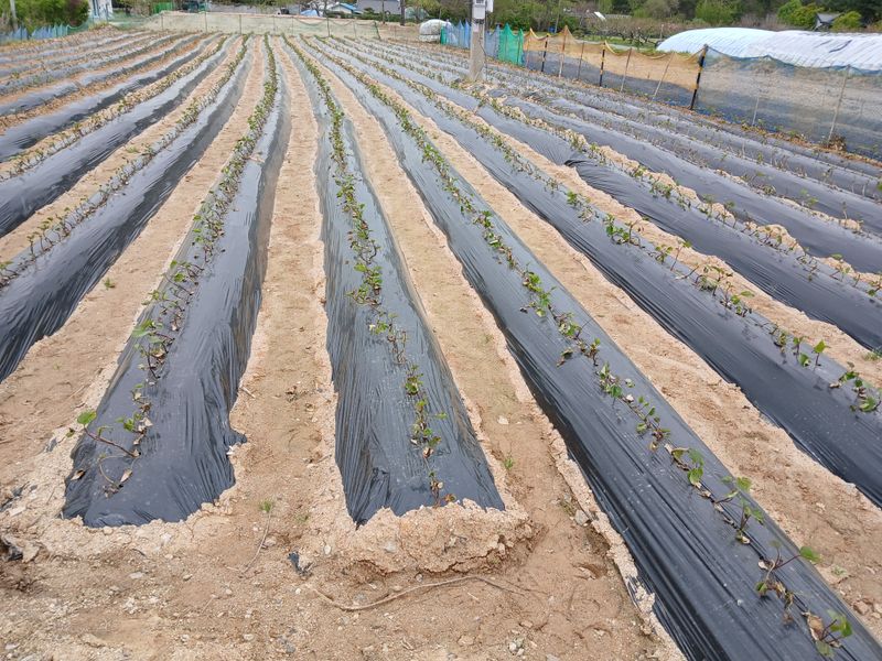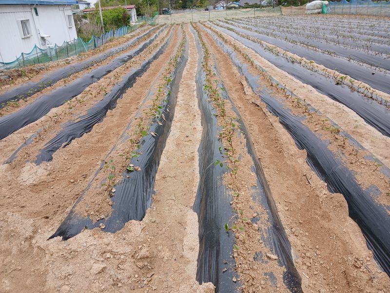 참깨두둑만들고비닐멀칭하였음