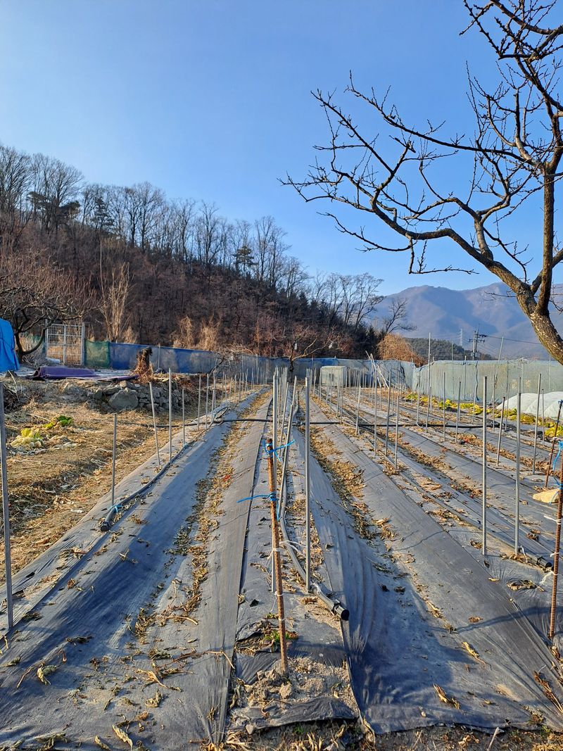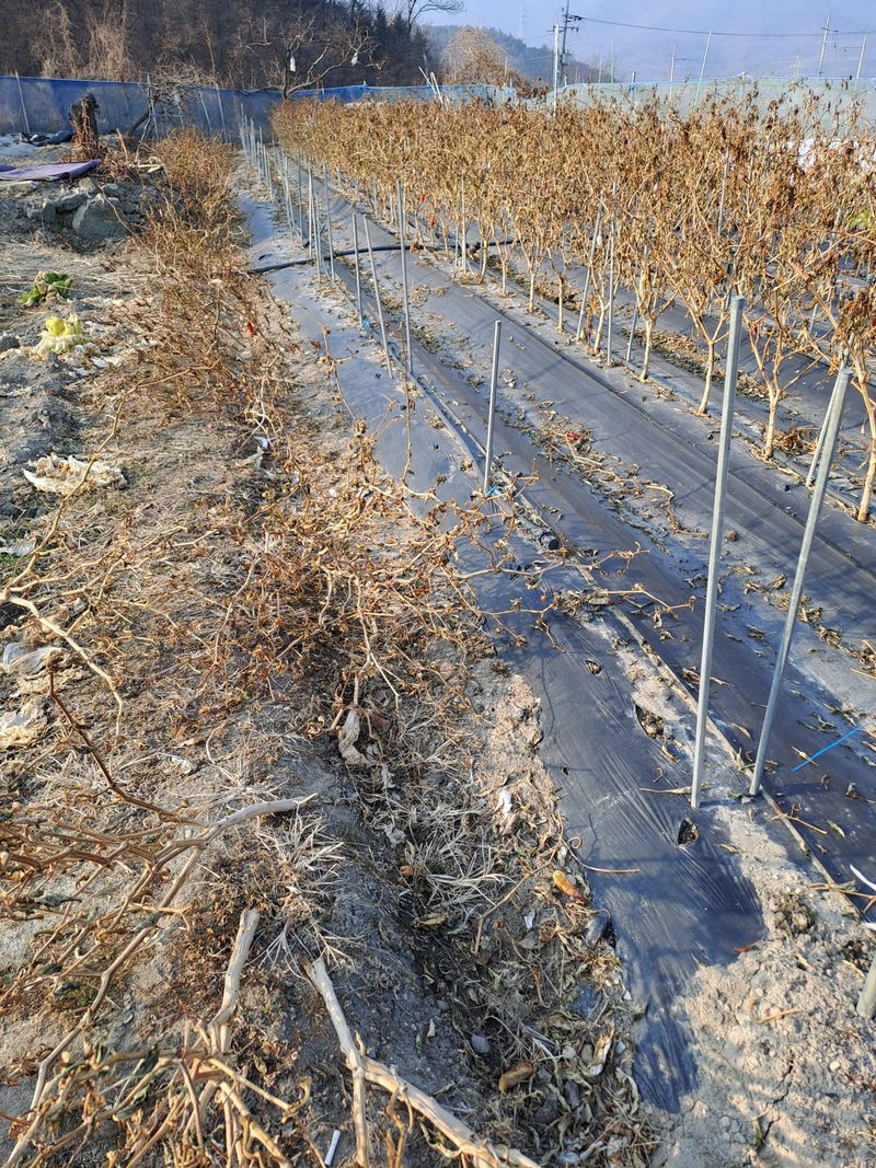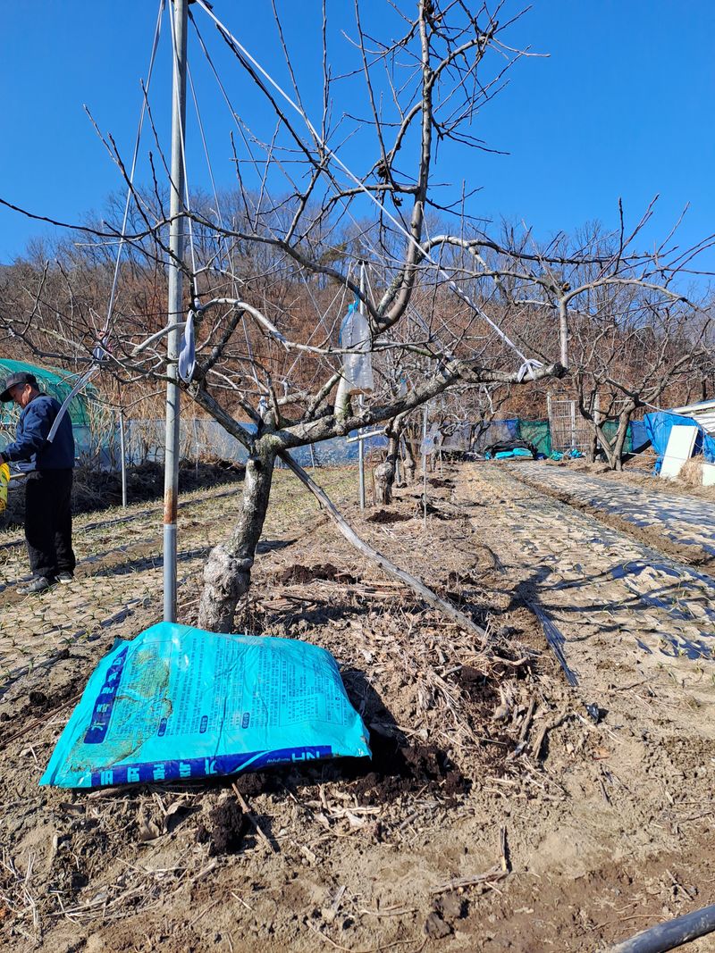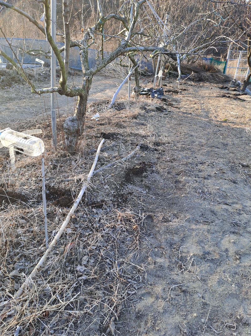 과일나무 유기질비료주기 작년고추밭고랑잡초메트걷기