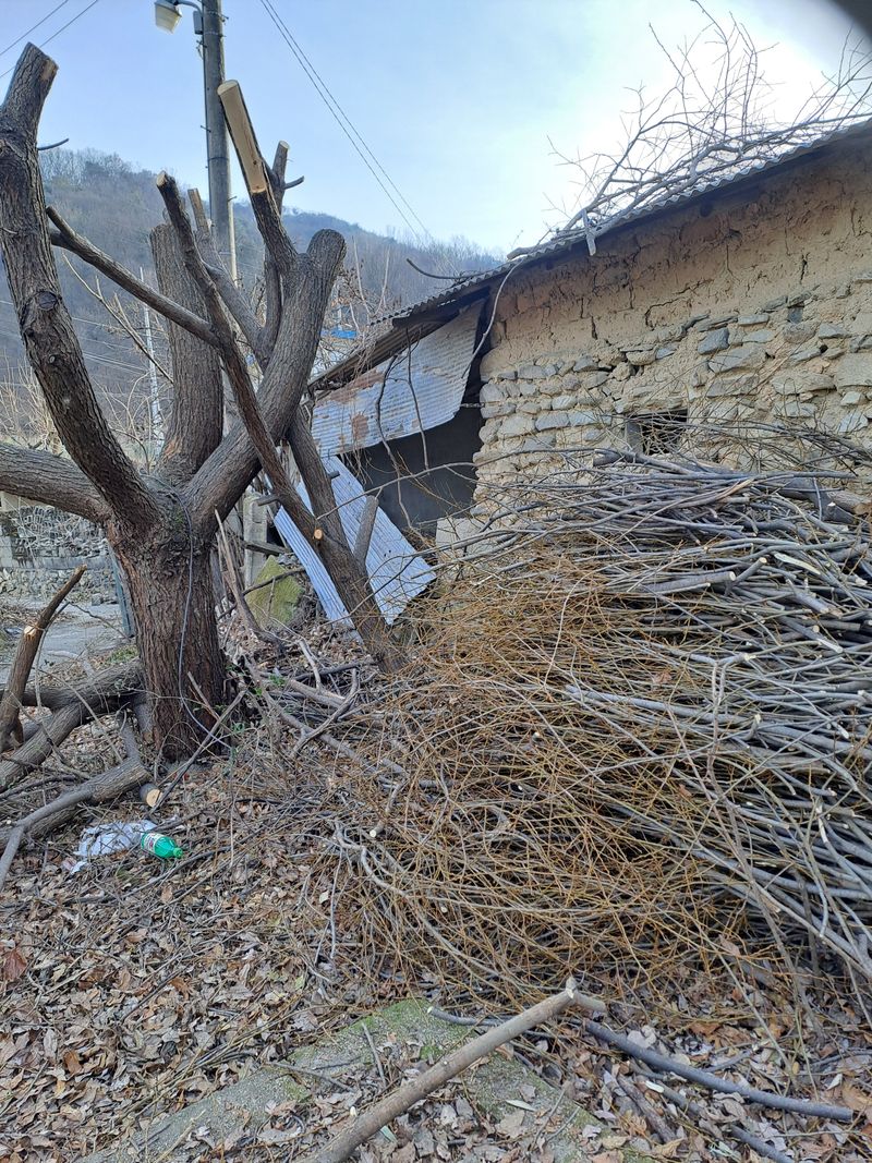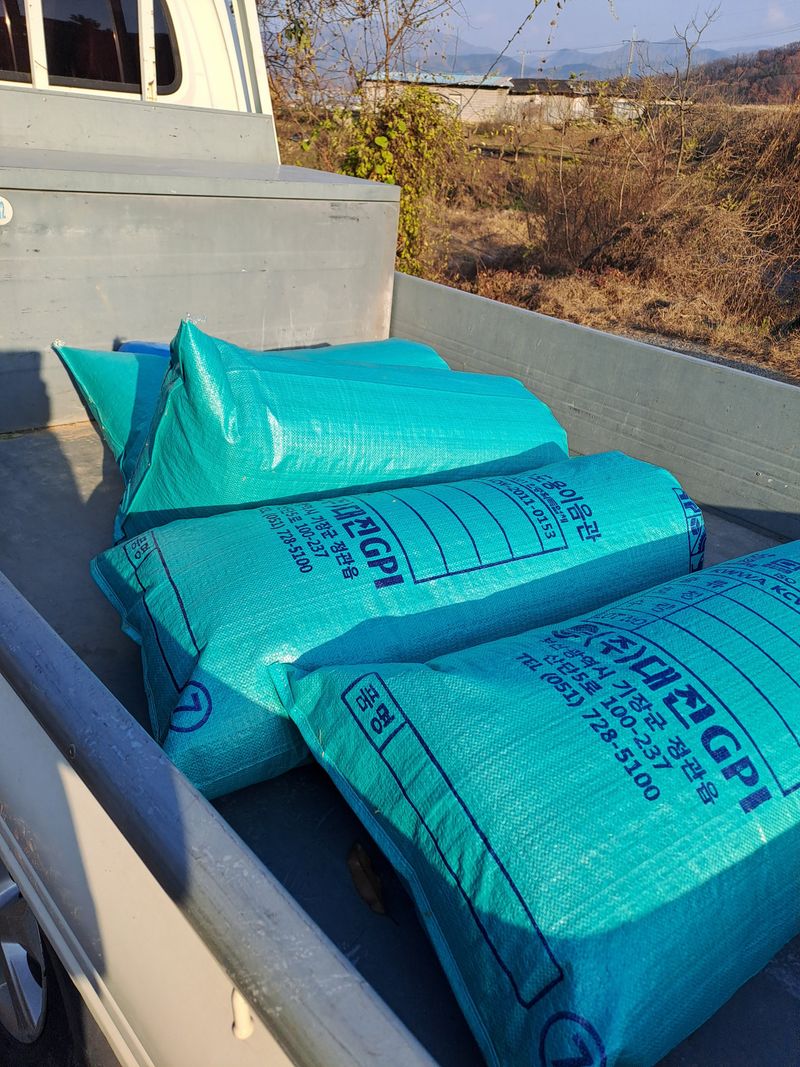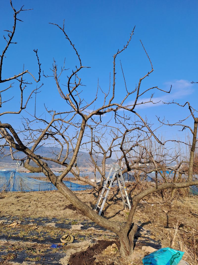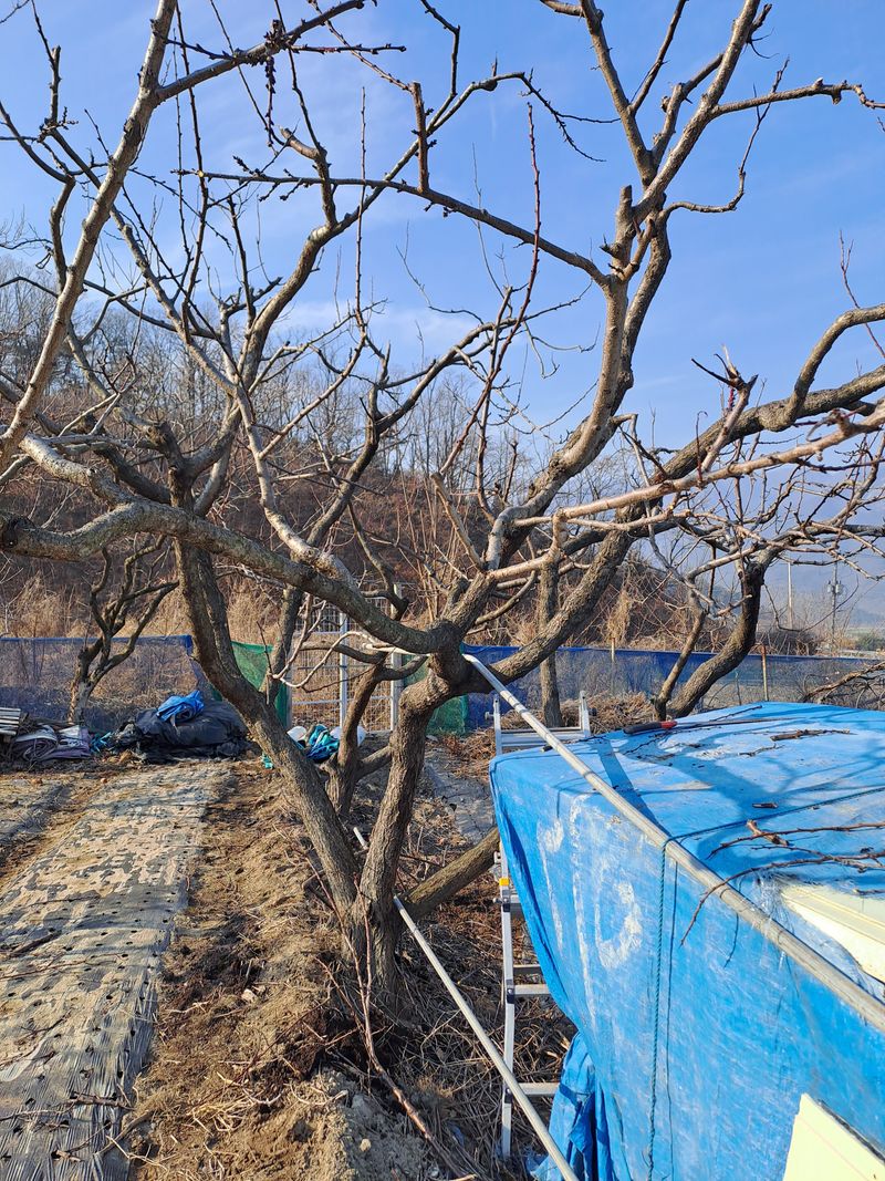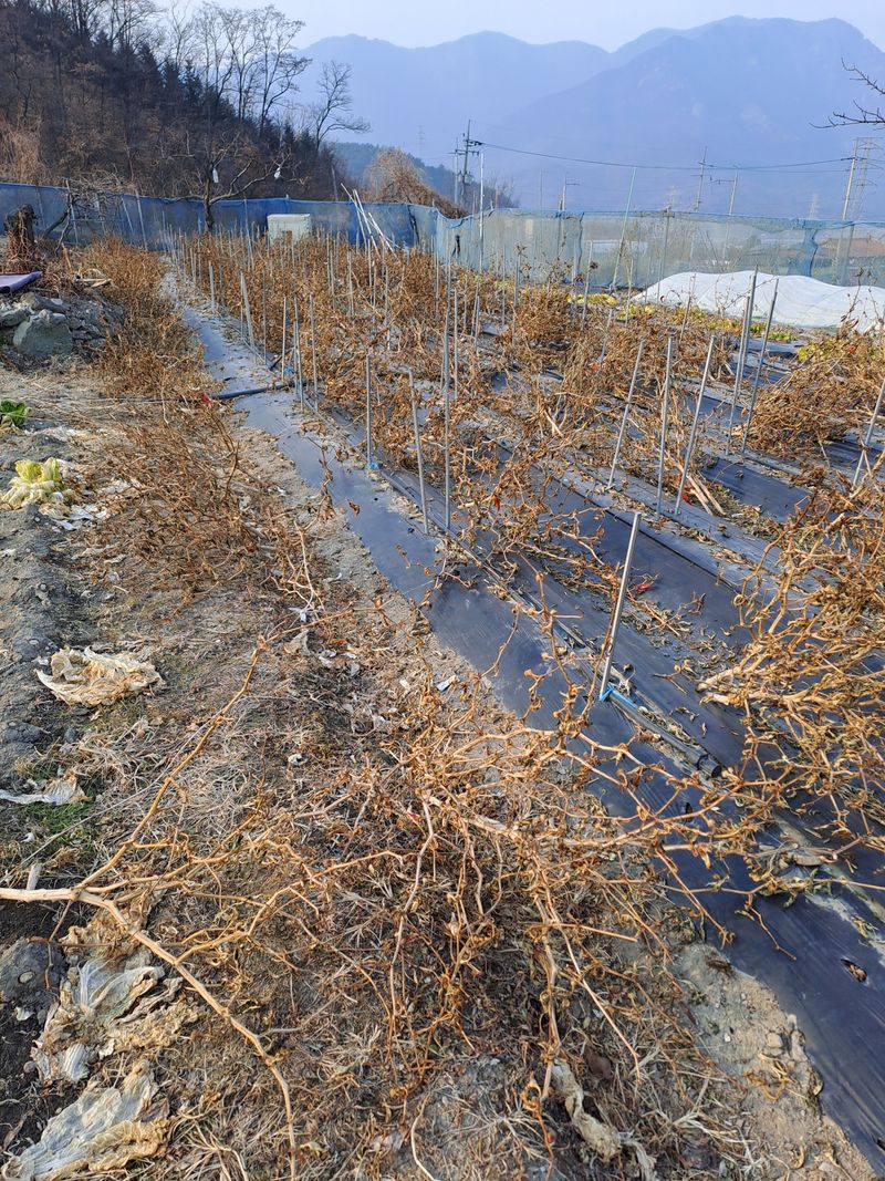 과일나무 유기질비료주기 작년고추밭고랑잡초메트걷기