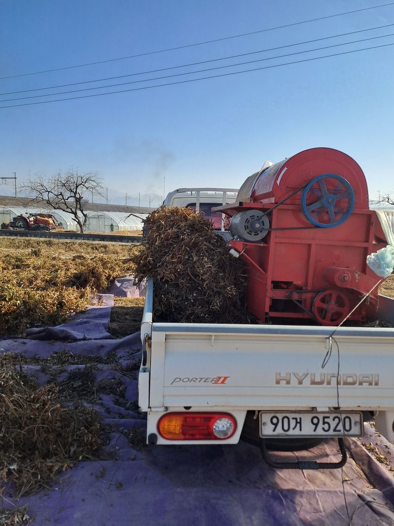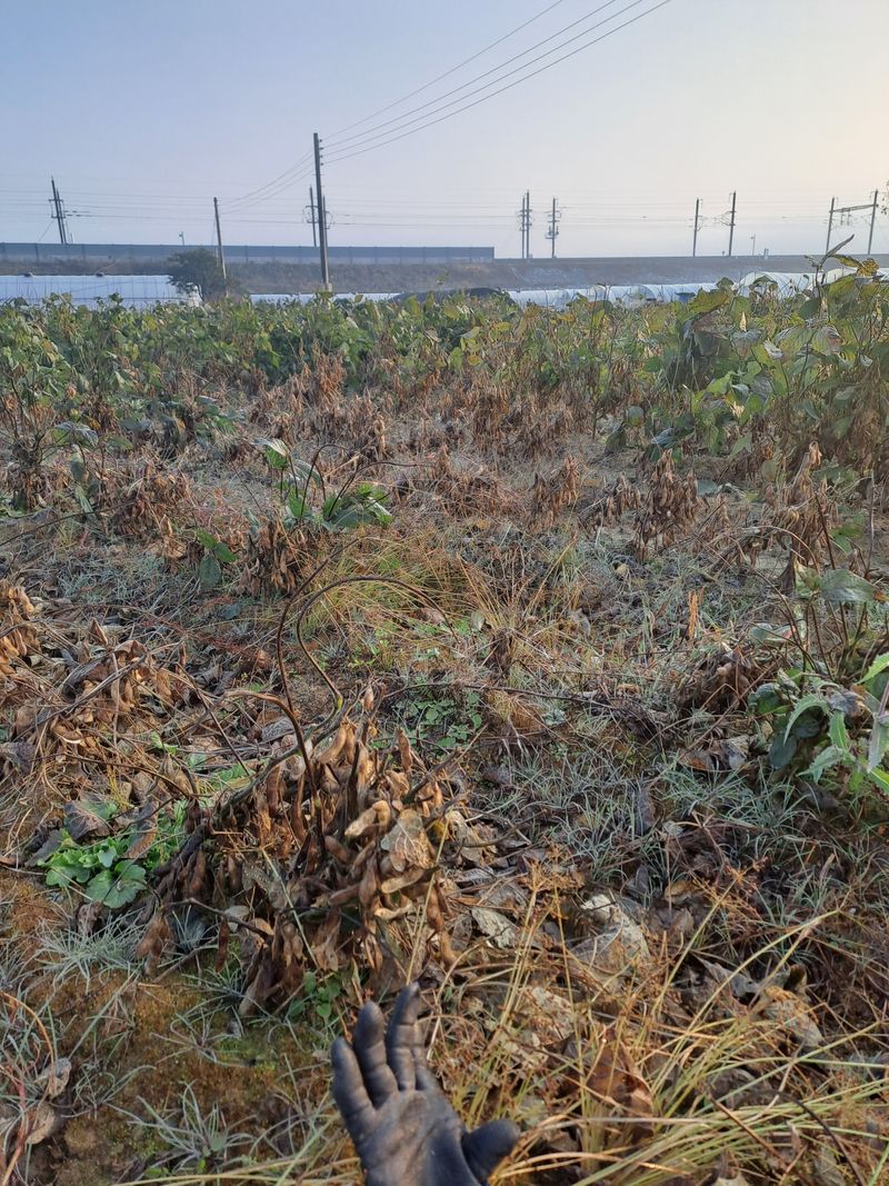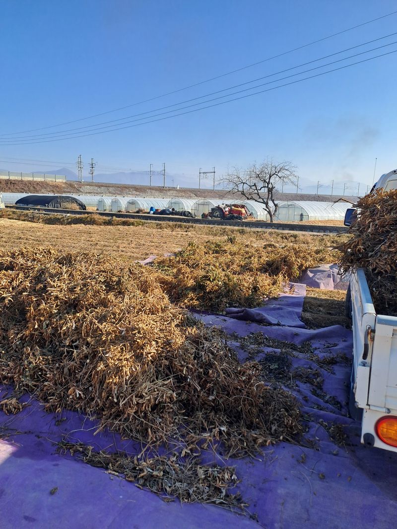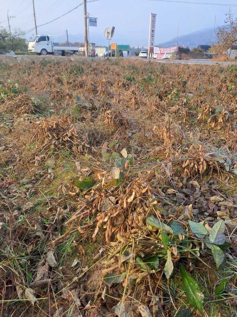 콩밭둘러보기내일오전콩꺽을예정준비갑바, 낫,손수레등