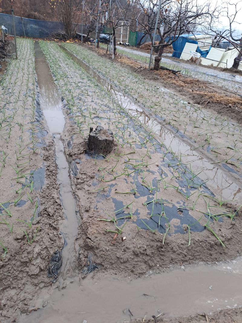비가많이와서마늘밭에나가보니물이차서물빼주기
