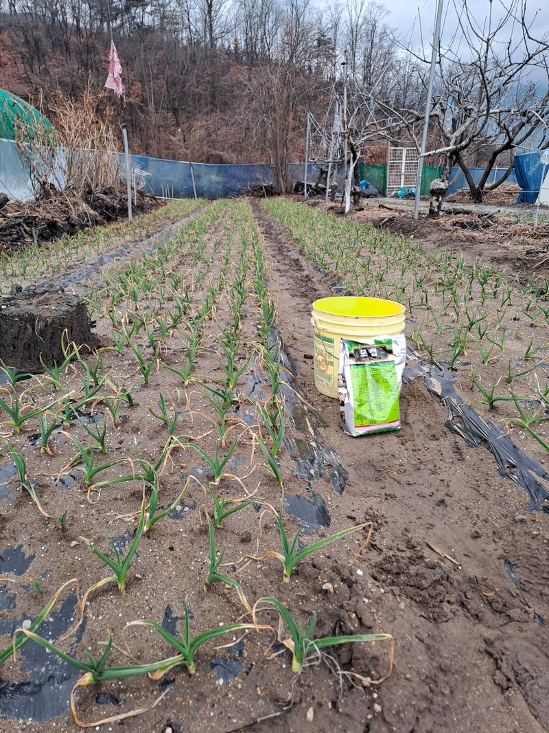 비온뒤마늘밭물고랑물빼주기,웃거럼요소비료주기,고자리파리예방토양살충제뿌려주기