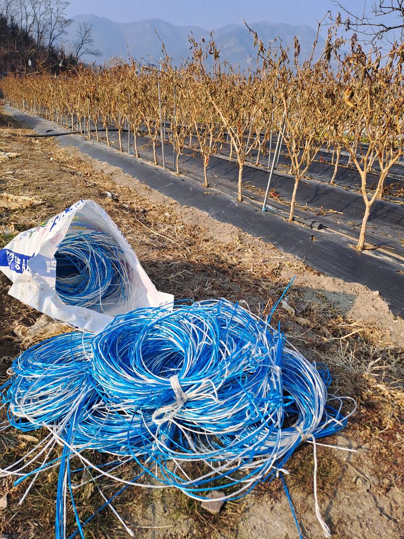 장마대비살구,자두후무사남은것수확 사과나무가지부러짐방지처지는가지노끈으로묶어고정