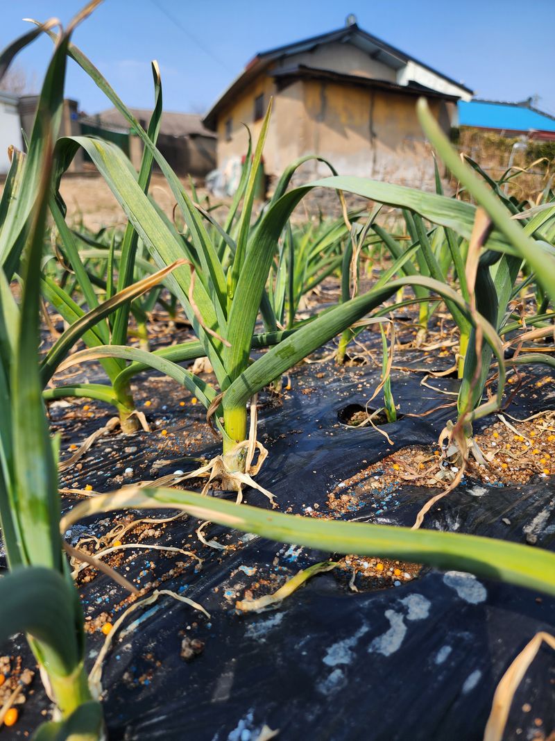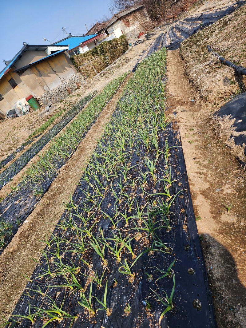 마늘. 양파 2차 추비 엔케이 토양살충제 뿌리고 물조리개로 물줌