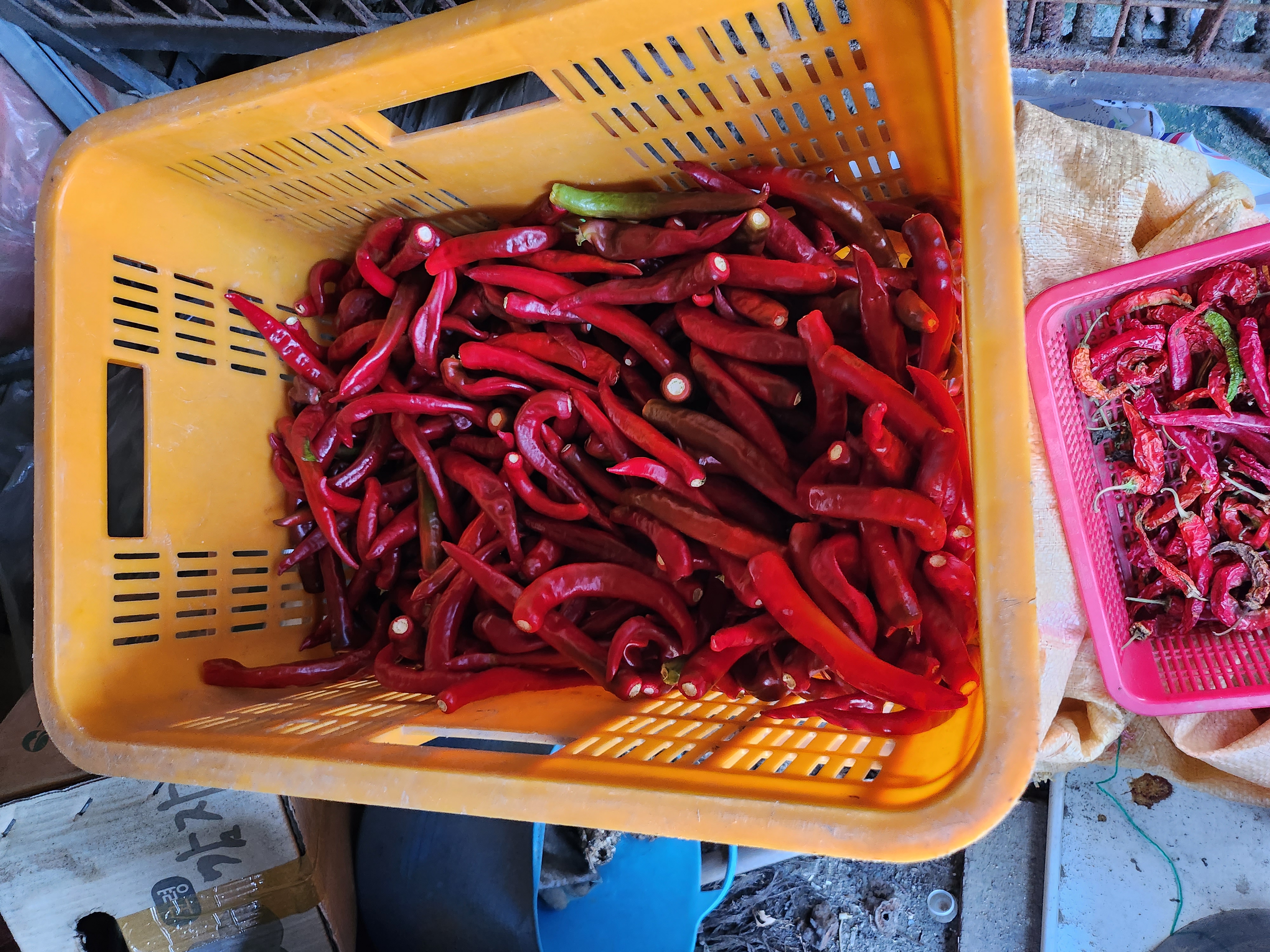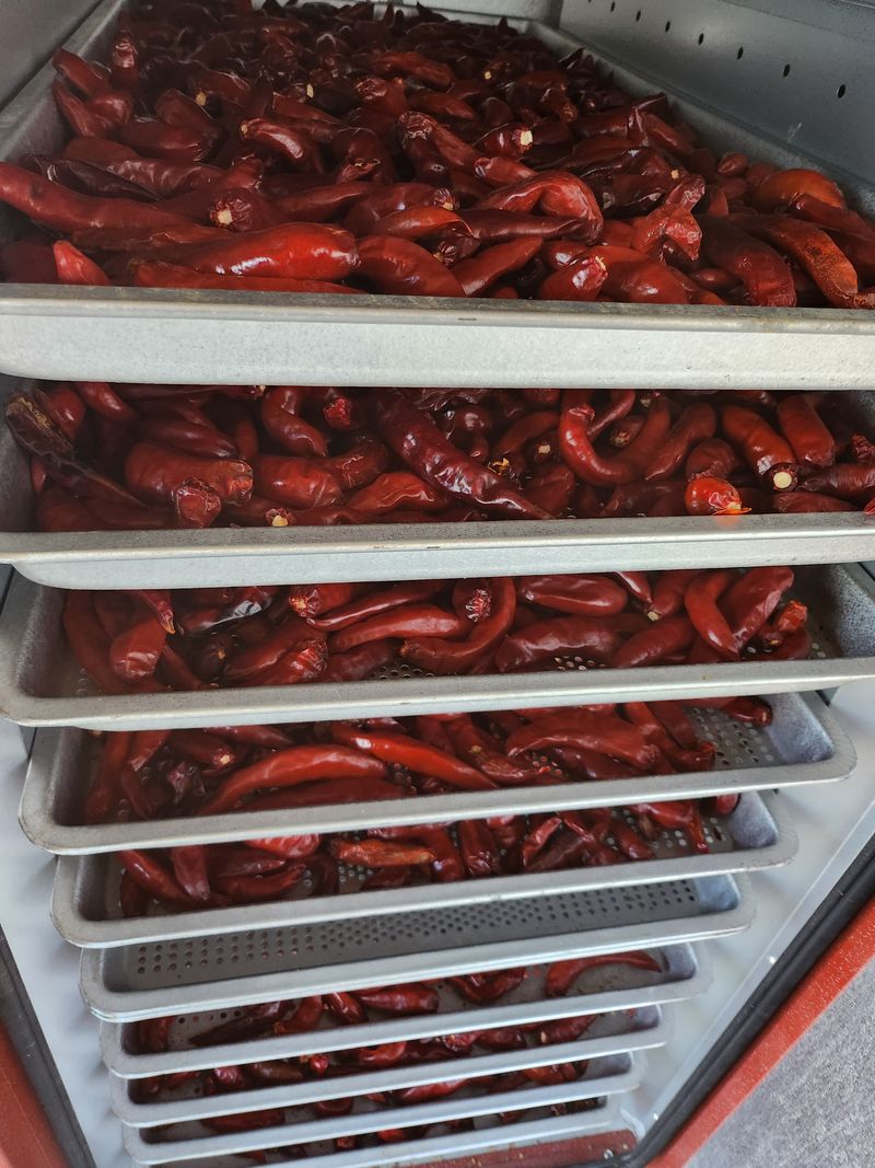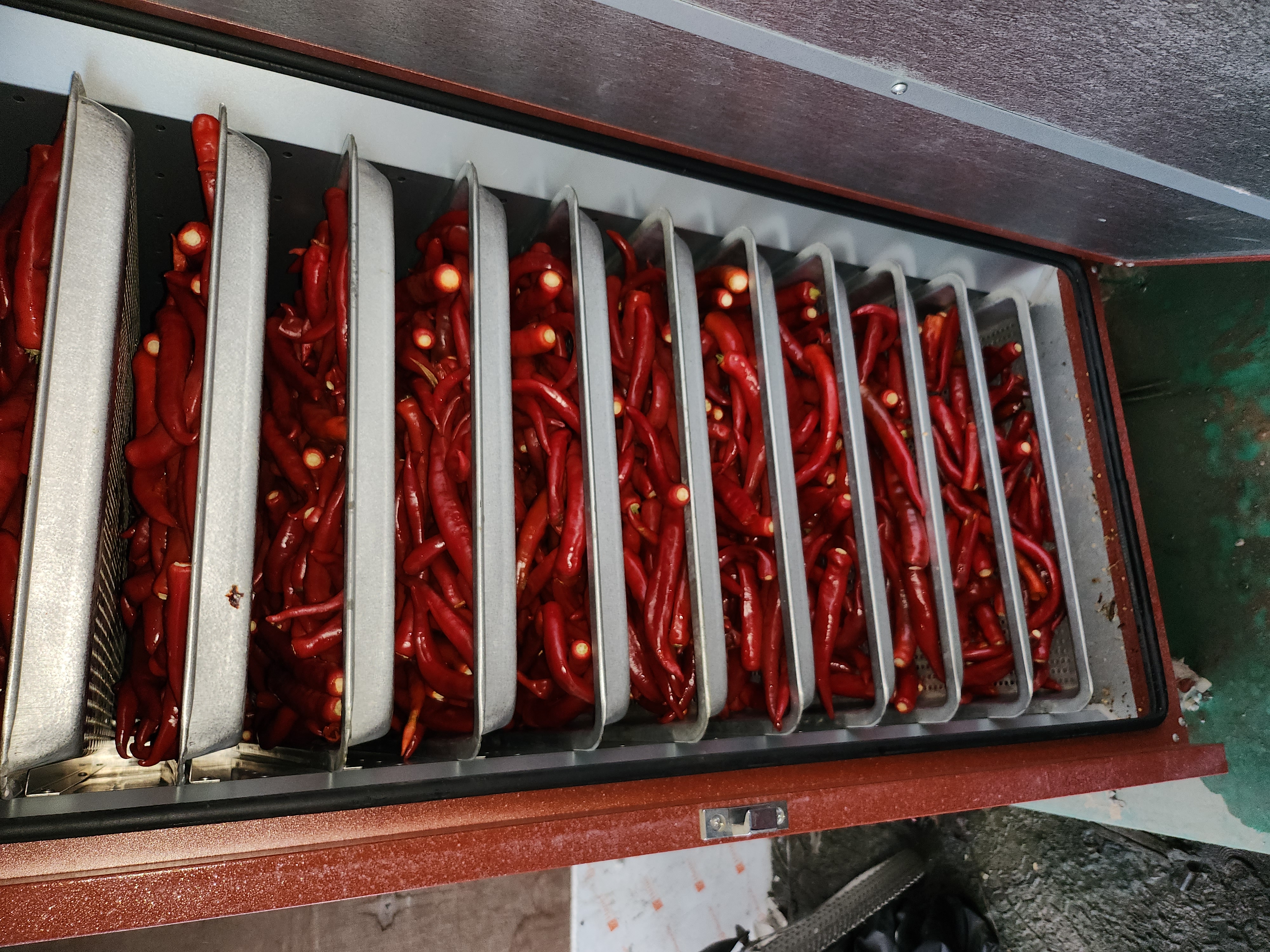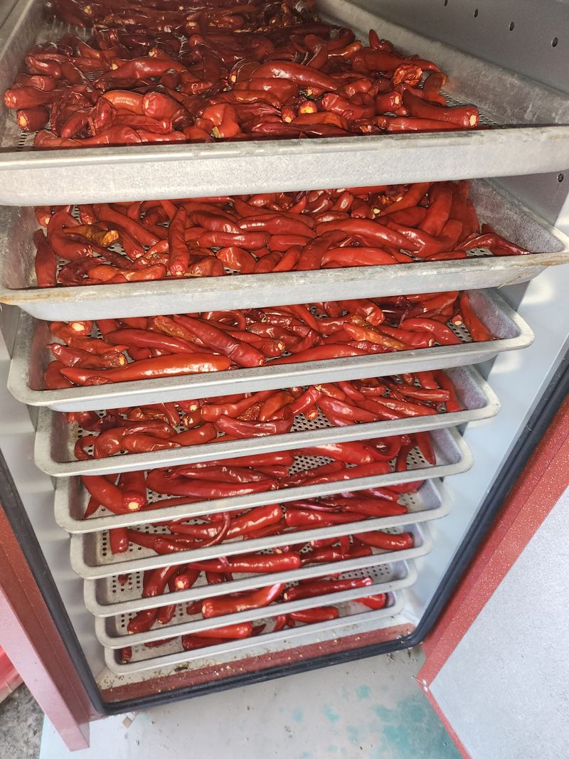 고추따서 씻어 건조기에 말림 첫수확 두콘테나 땄음