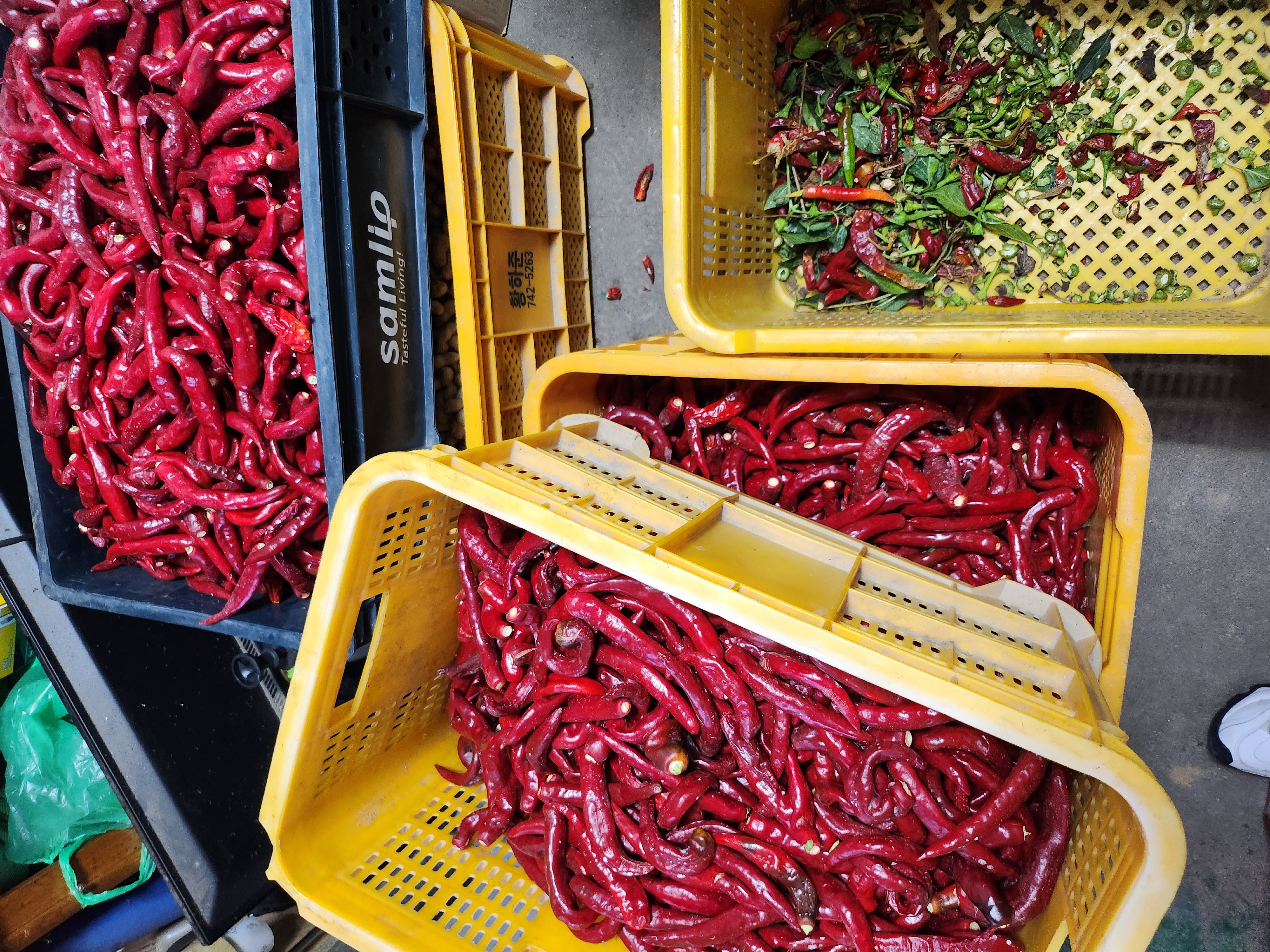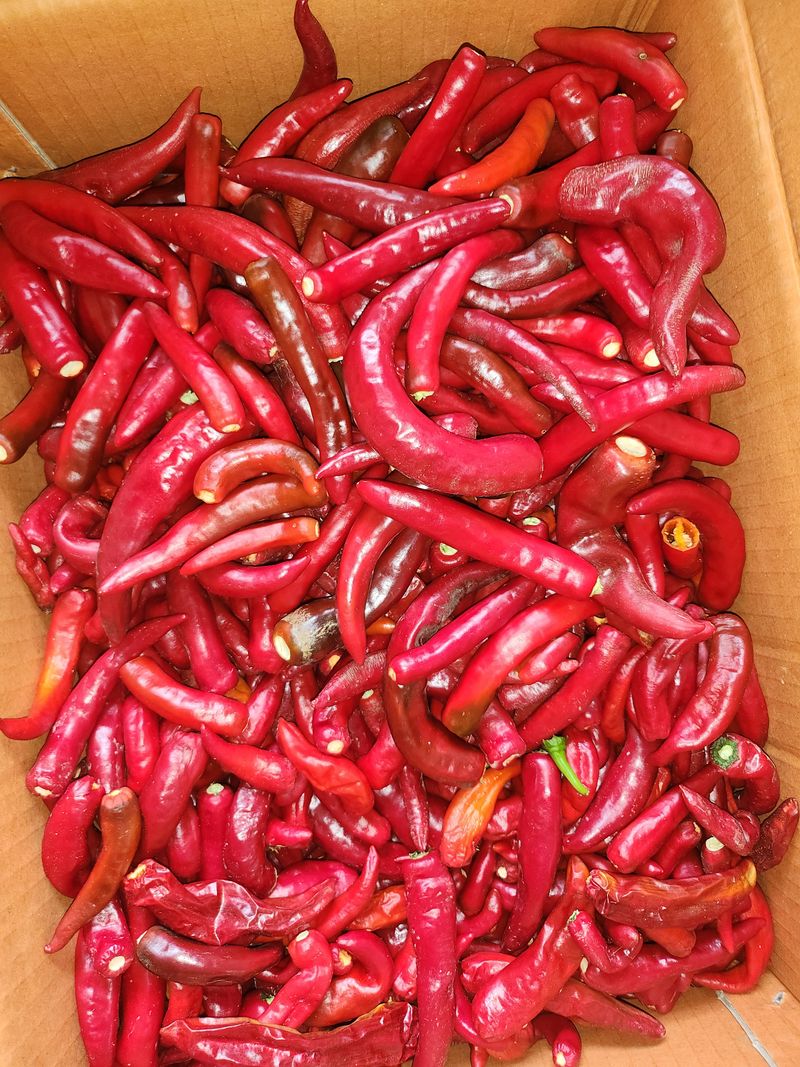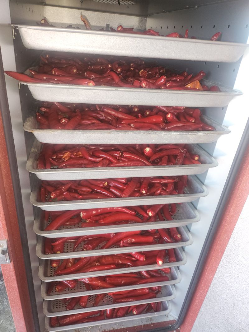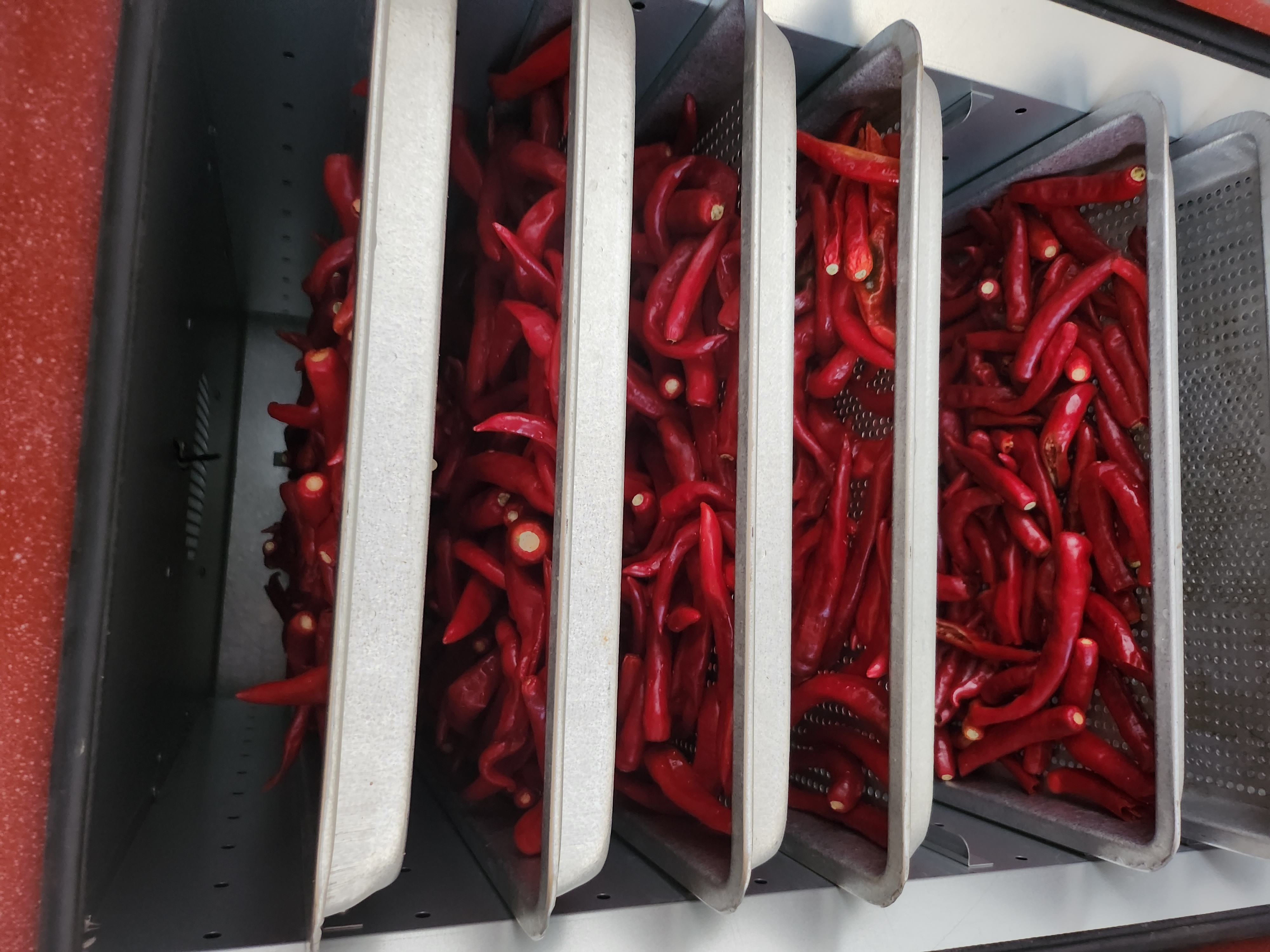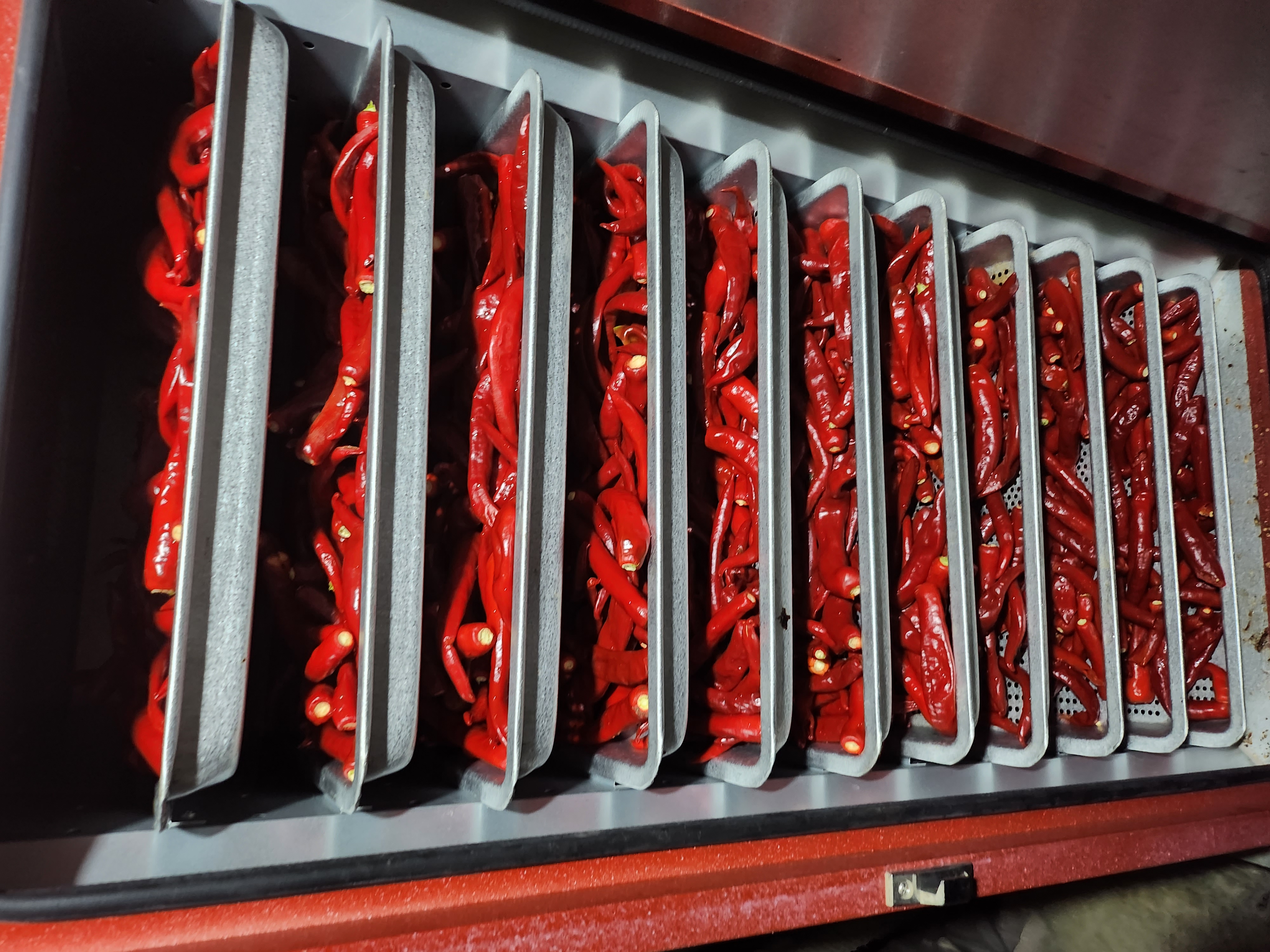 고추따서 씻어 건조기에 말림 첫수확 두콘테나 땄음