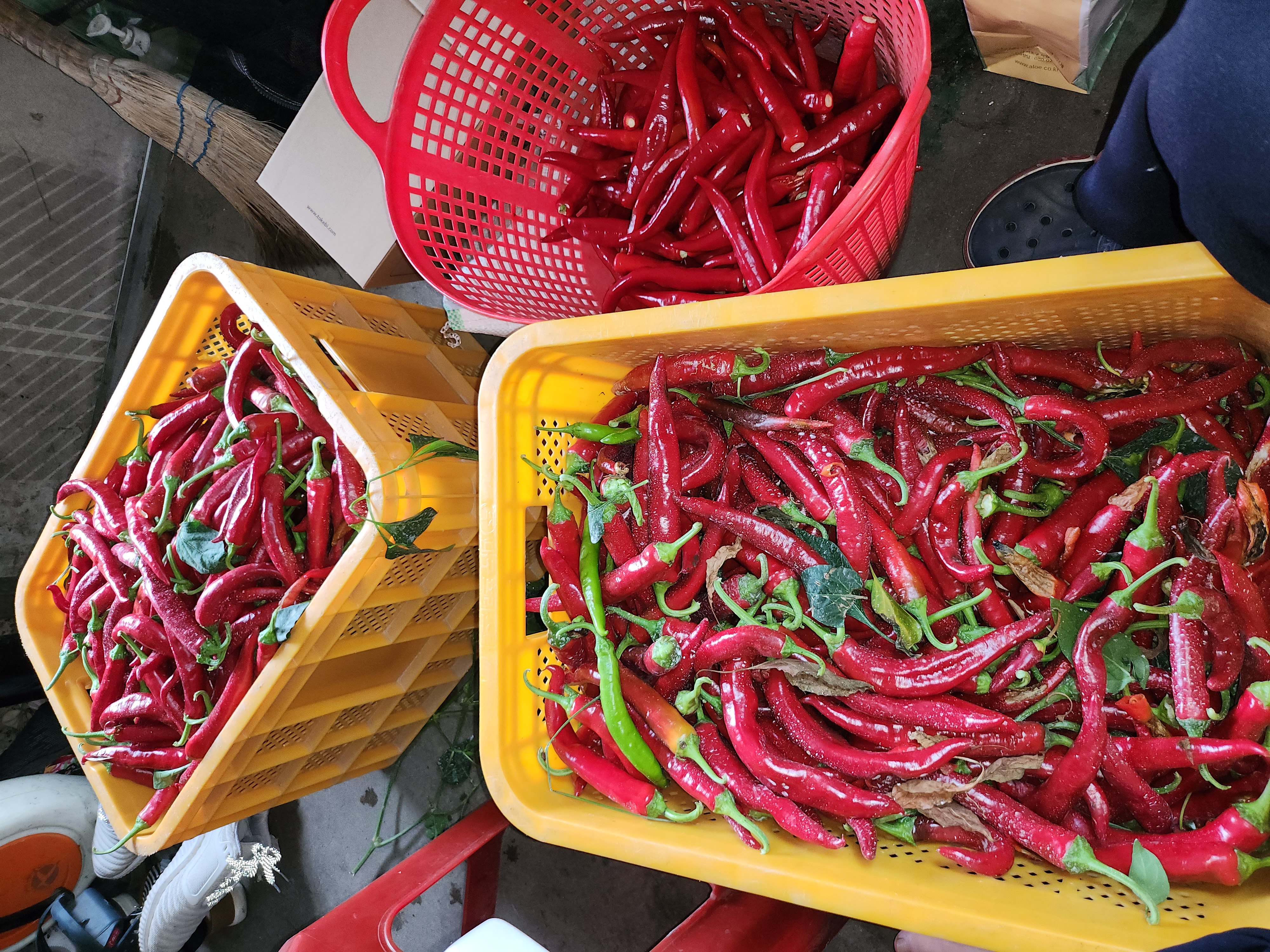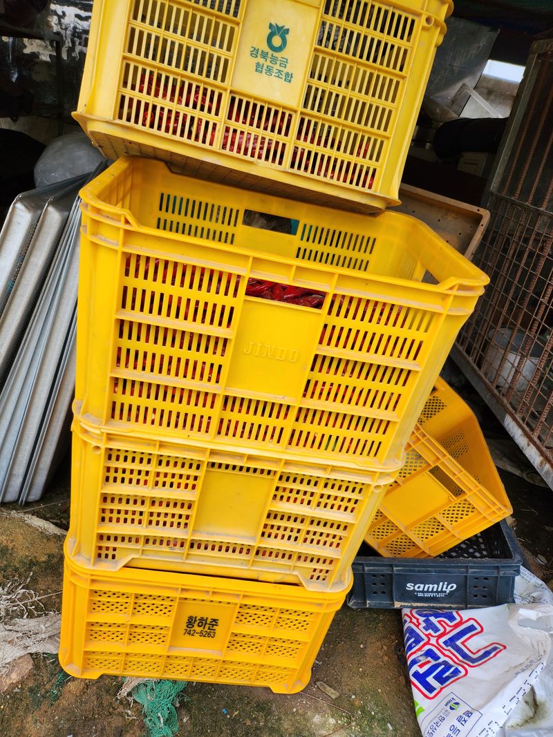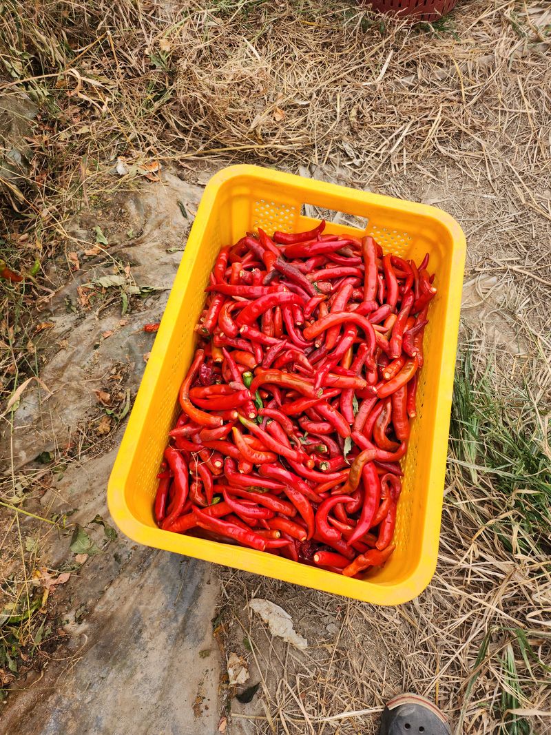 고추수확3주만에 했어요 고추익는 속도도 늦고 하느것을보니 진짜끝물인것 같아요 3콘테나 땄어요