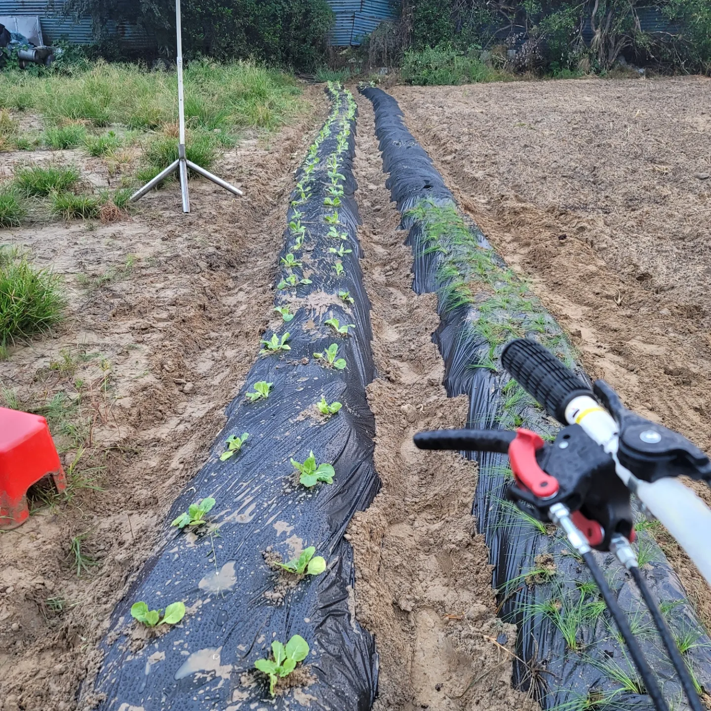양파.마늘 .대파.정구지.무우.배추 관수시설위한 호스.점점스토퍼 구매 관수호스 : 1롤 33000 원 점적호스스토퍼 : 6개= 7천원