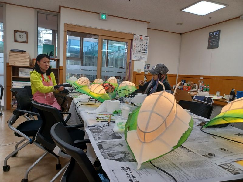 - 민화 그리기 - 마을 추진위원께서 방문하셔서 마을발전에 도움이 되는 대화