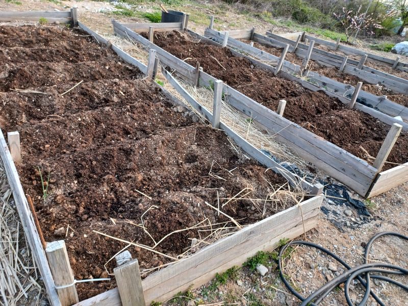 - 양파 냉해방지를 위하여 볕집 덮어주기 - 텃밭 갈아놓기( 땅걸기 작업)