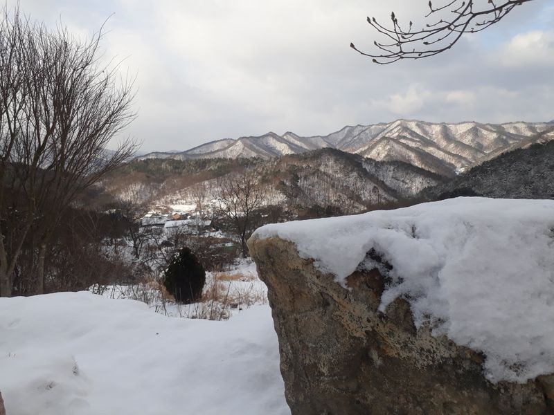 오늘도 눈이 내리다 오전에 끝쳤다. 눈으로 뒤덮힌 적상산은 장관이다. 눈을 쓸고 있는데 관광객 한무리가 등산로를 따라 올라간다. 간혹 부부등산객도 눈으로 뒤덮힌 장괸의 풍경을 보기위해 다정히 산으로 오르고 있다. 오늘도 쉬는 날이다