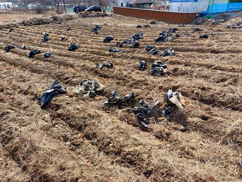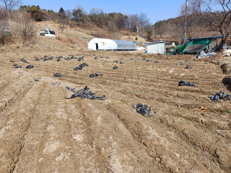배추.무우심은두둑 비닐제거작업및밭고량 부직포제거작업함