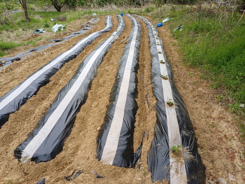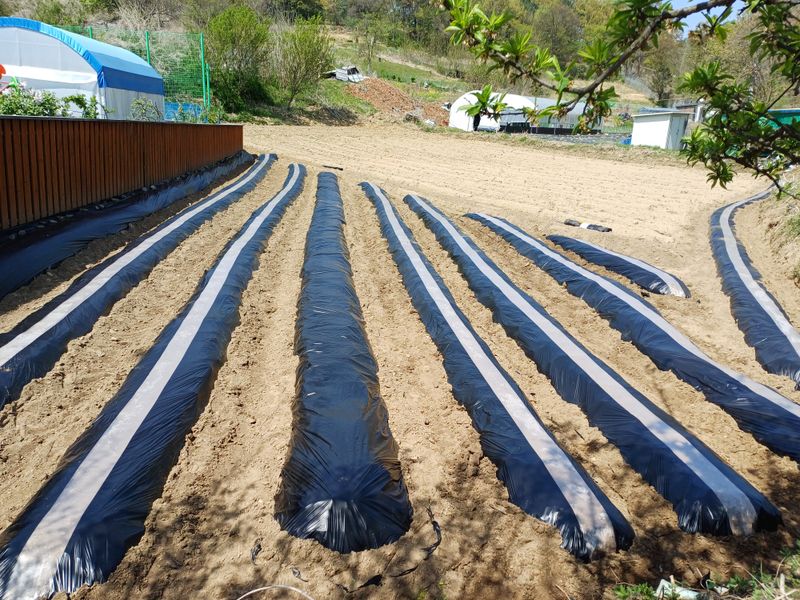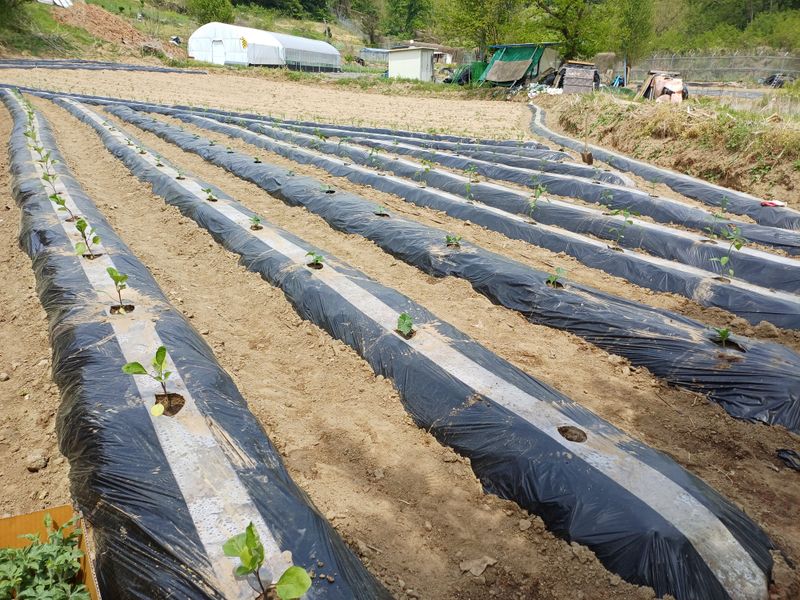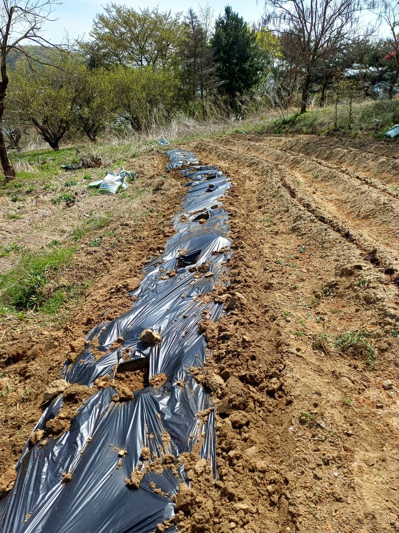 비닐작업 및옥수수.노각.가지.참외.수박.아삭이고추.청양고추.단호박.가시오이 심다