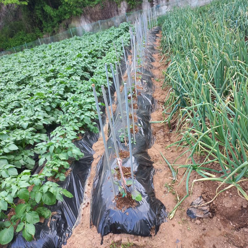 오늘은 고추 지주대 설치 및 대파,자색 고구마 복주기 해습니다