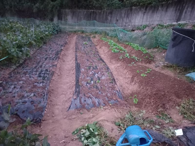오늘은 간동밭 무우, 봄동, 상추, 쪽파, 치걸이 흩어뿌림, 종구심기, 모종 이식 했습니다 그리고 새가 새싹을 잘라 먹어서 차광막 씌워습니다
