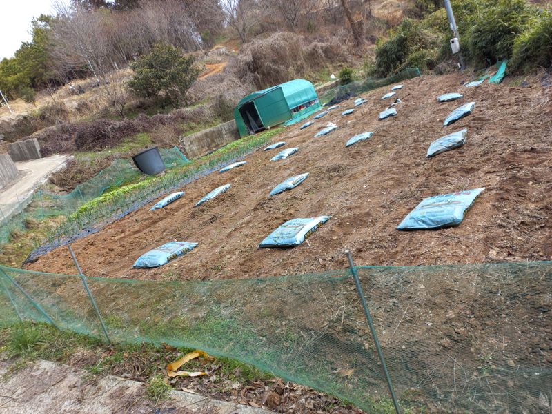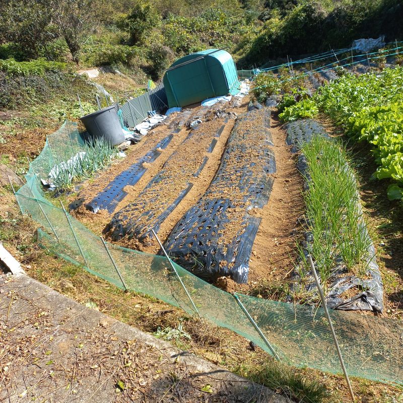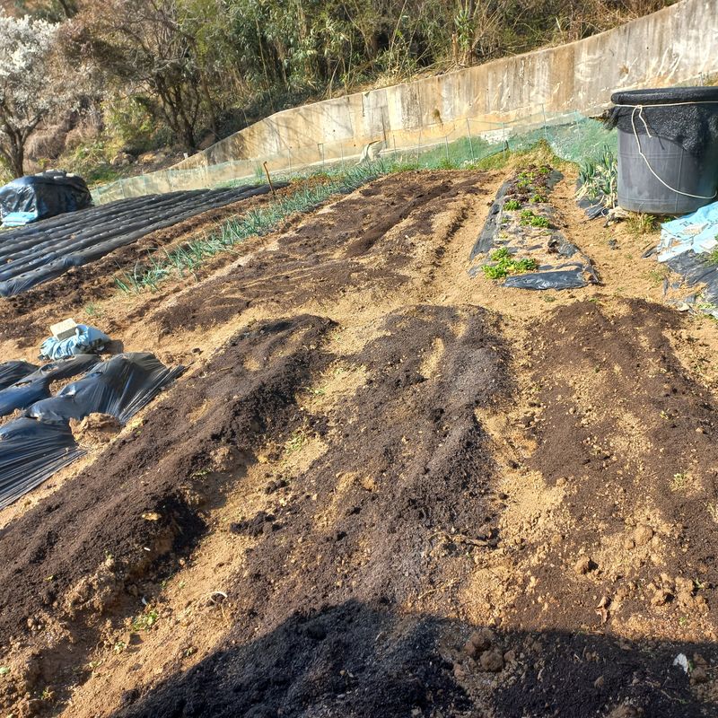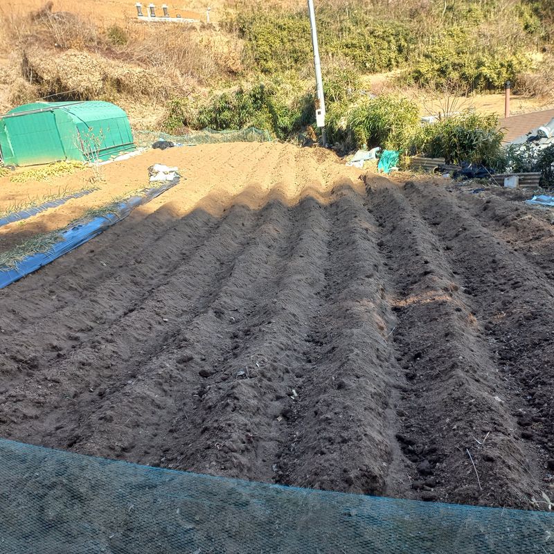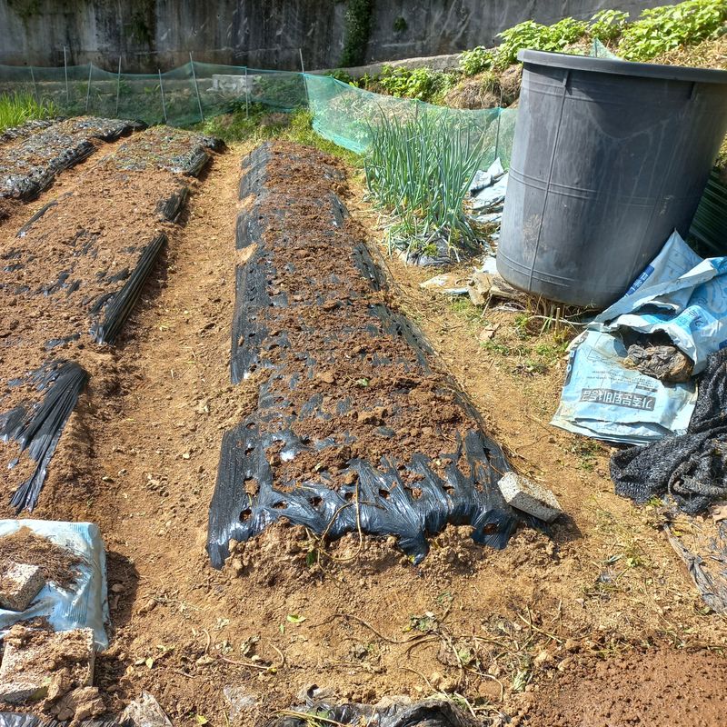 오늘은 고추밭, 고구마밭, 생강밭 조성과 퇴비,복합비료, 토양살충제 시비 후 유공비닐 설치했습니다 삽을 사용하여 밭을 조성하니 어려움과 시간이 많이 걸렸네요