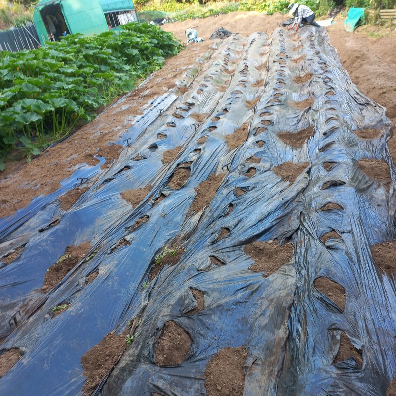 오늘은 간동밭 씨감자 두둑 유공비닐 설치작업