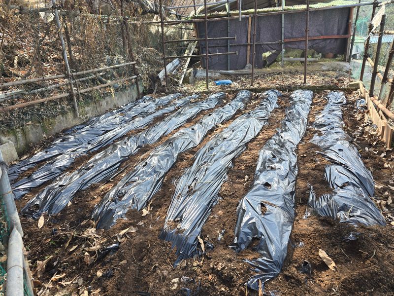 2025년4월30일 고추심기 전 땅 갈고 고랑치고 비닐 씌우기