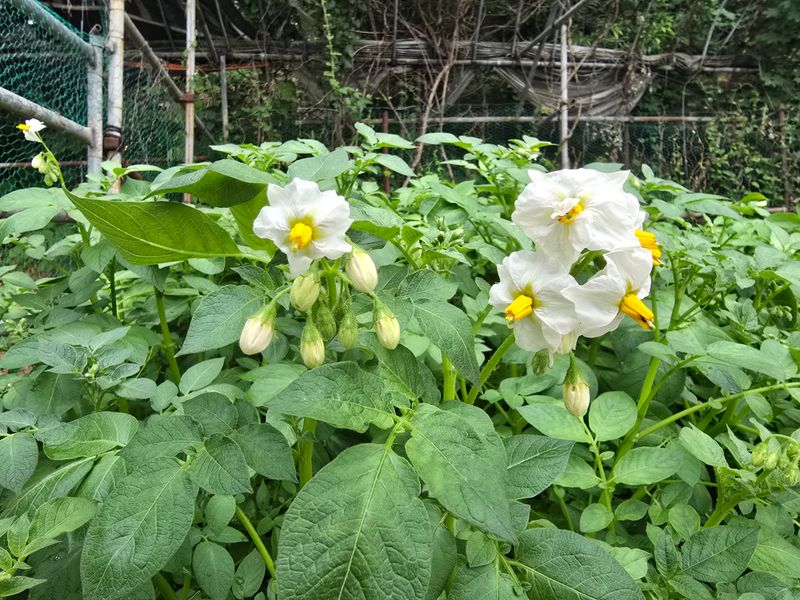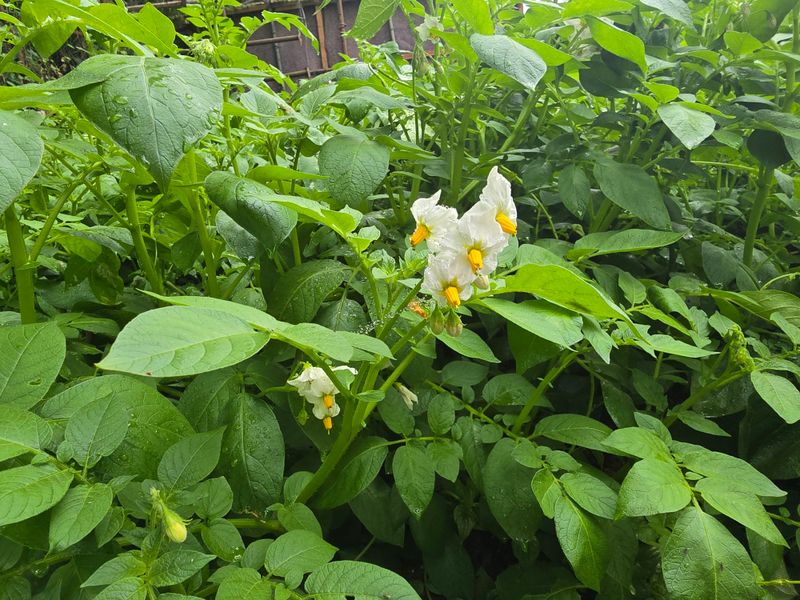 감자 잘자라고 있어요. 물주기및 감자꽃이 예쁘게 피었네요. 조금만 있으면 감자를 캐야 겠지요.