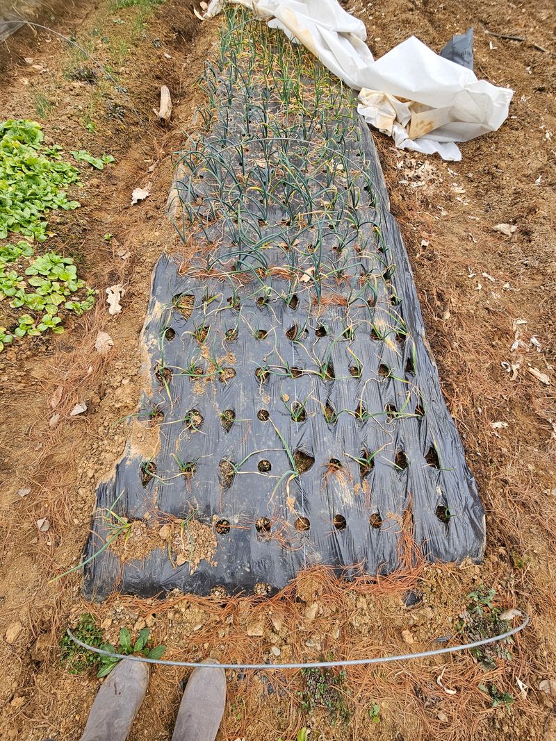 겨우내 있던 마늘 비닐 열어줌 토양살충제 시비 봄동. 하루나. 파. 비닐 벗겨줌