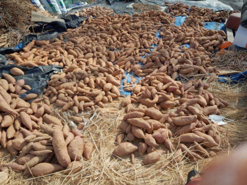 2024년 10월6일 비가오는바람에 고구마켓는 작업을 중단했습니다 너무나 수확양뜩떨졌습니다