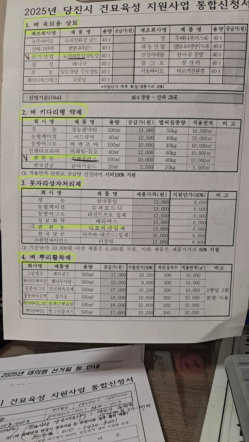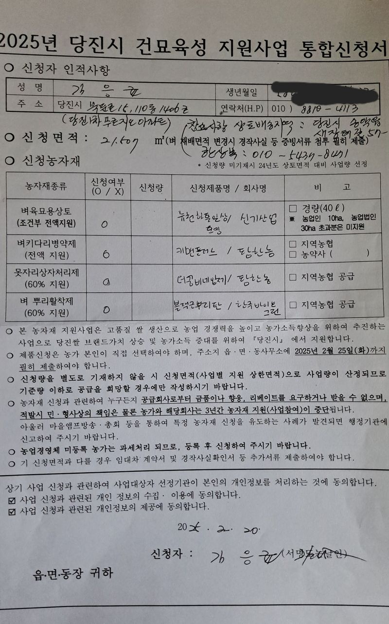 2025.02. 21. 건못자리 상토, 키다리병, 상토처리제 및 농민수당 당진1동사무소 산업계 신청