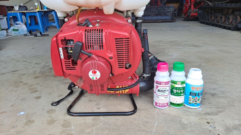 2025.07.21.(월요일/흐림) 삼광벼 살충제(명타자) 6병, 살균제 (헬리건) 6병, 규산(빳빳탄) 6병 1차방제 작업