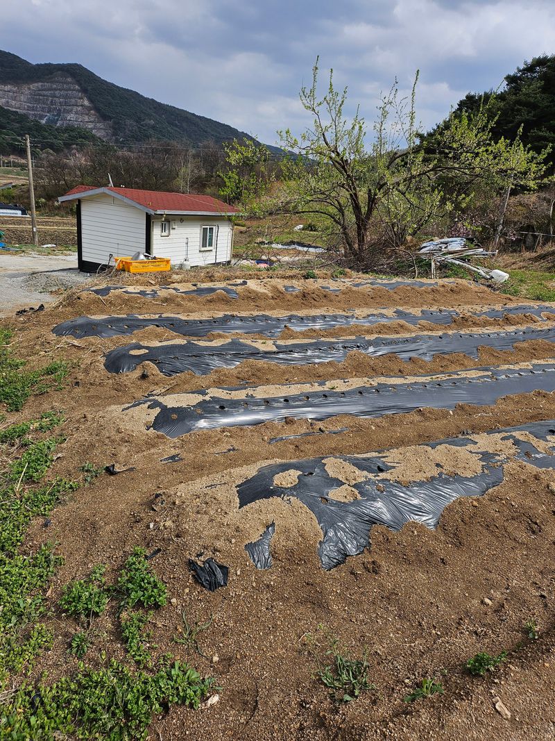 고추비닐작업. 참깨 비닐 작업 모종으로심기