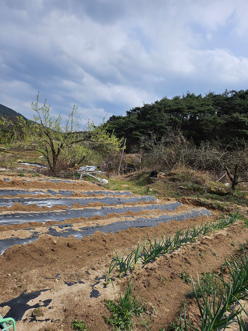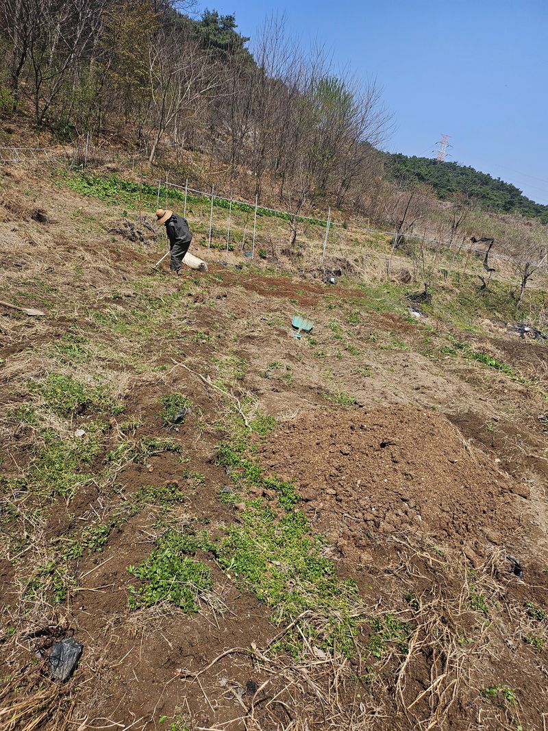 논 물모터 설치함송동. 복숭아 나무. 햑함