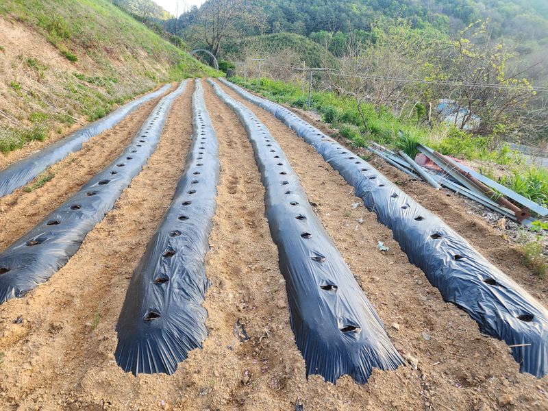 고추 지주대 고랑 부직포 1차고추줄 설치 완료~~~