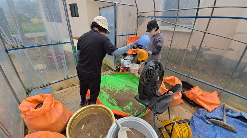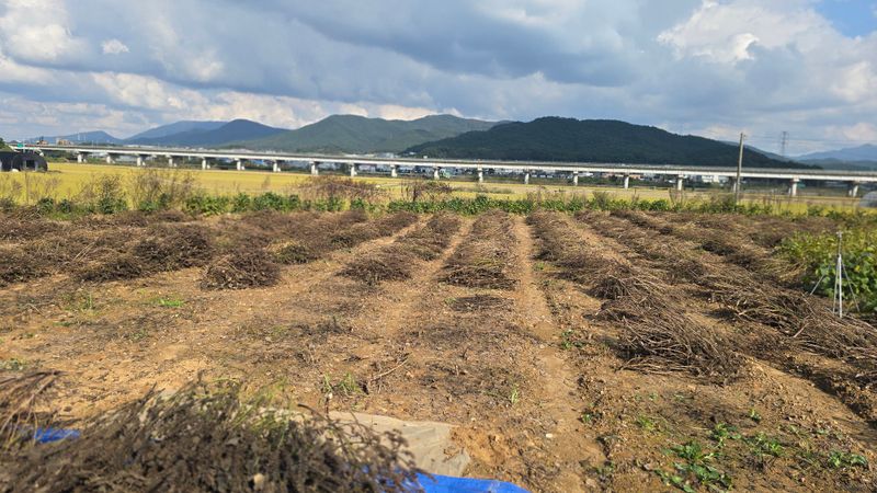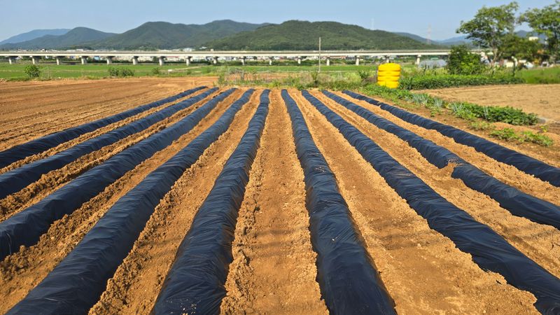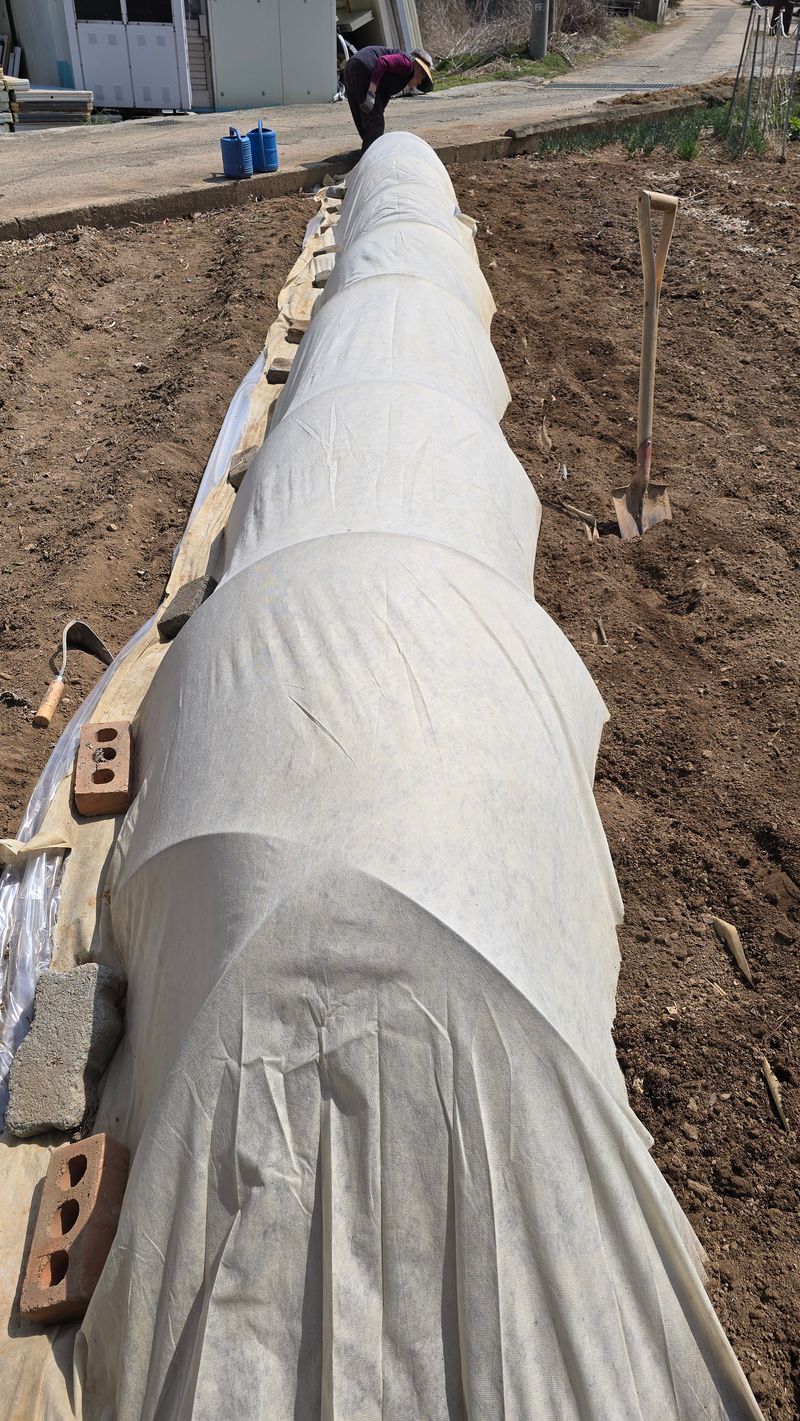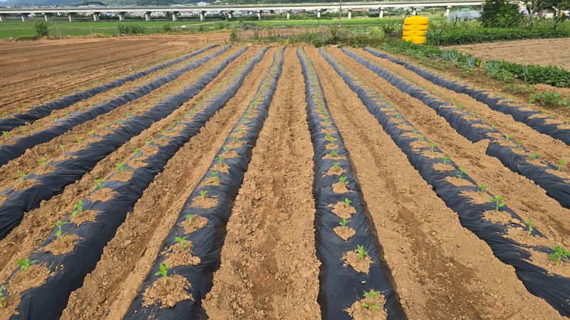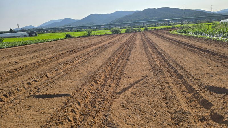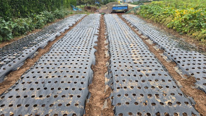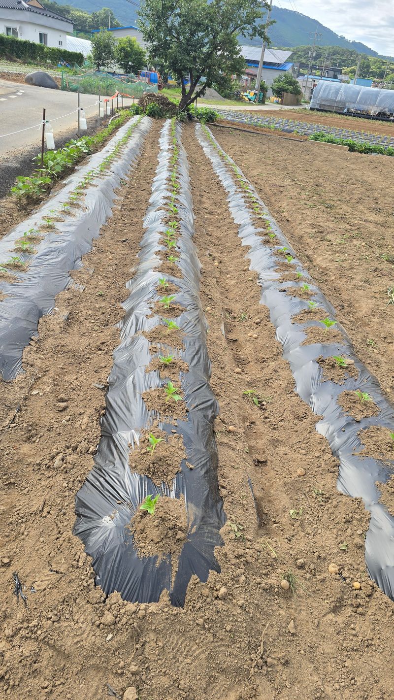 참깨 심을려고 두둑을 만들고 비닐을 쒸웠다