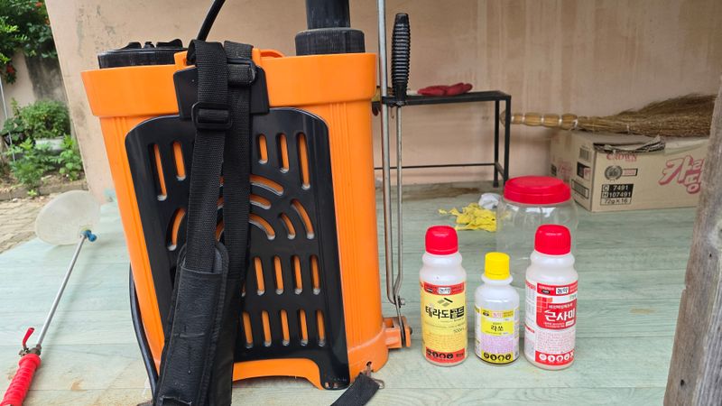 오늘 새벽에 참깨밭에 역병.시듬병약을 치고 주변에 풀이 많이 나 풀약을 쳤다