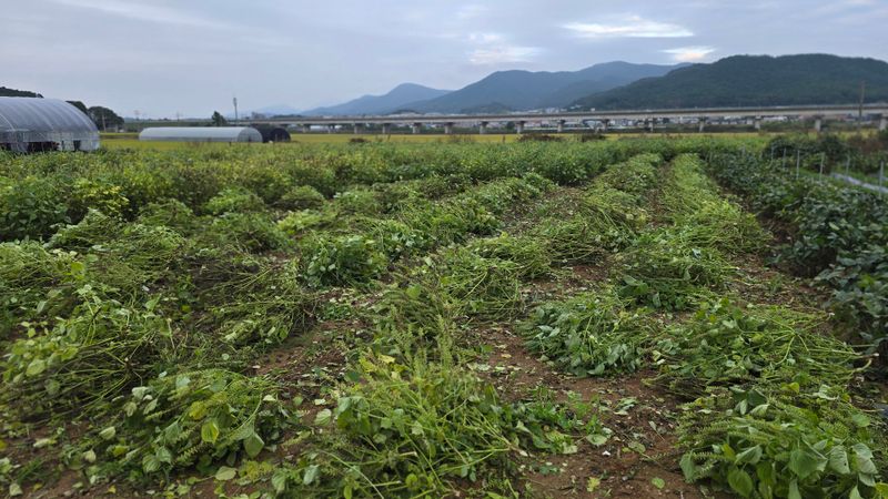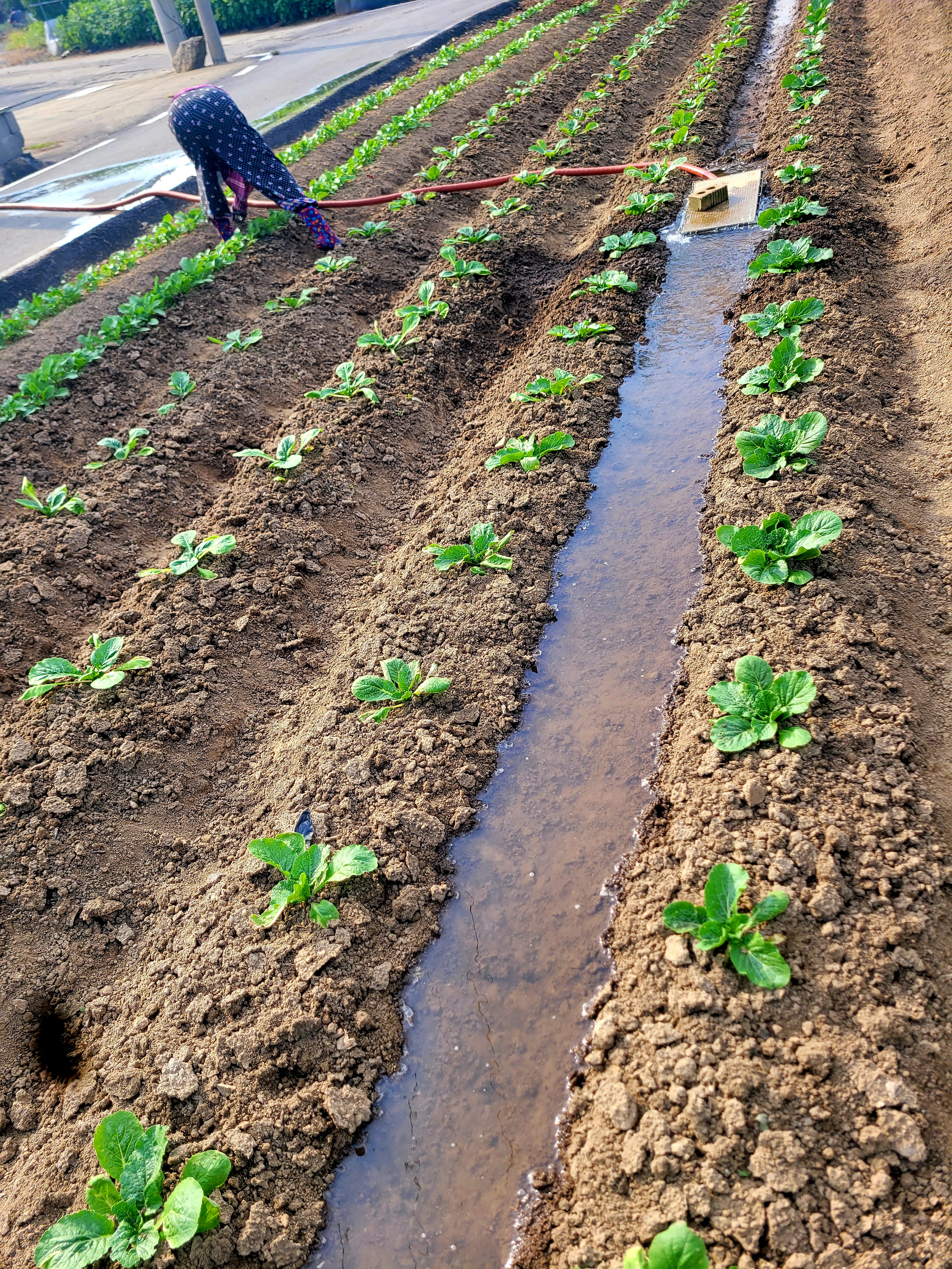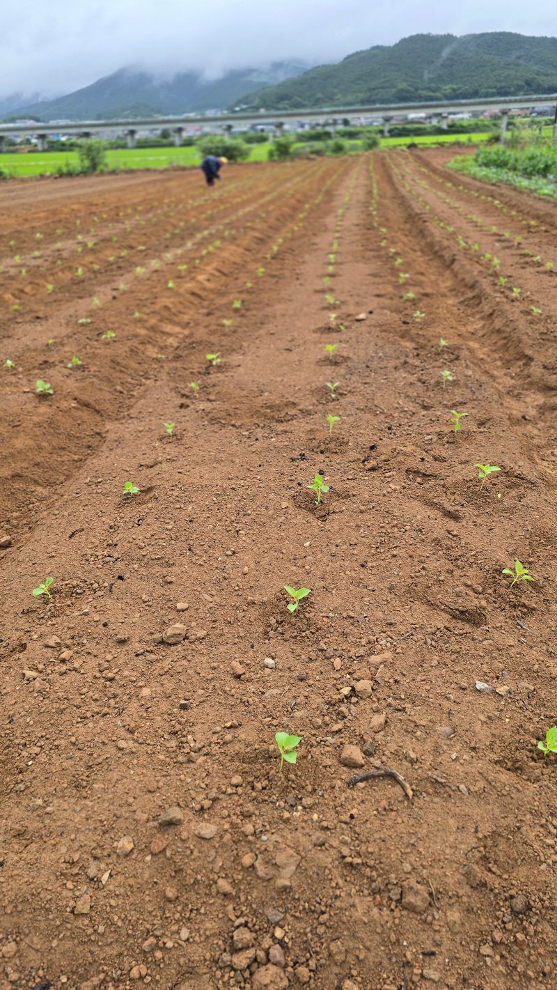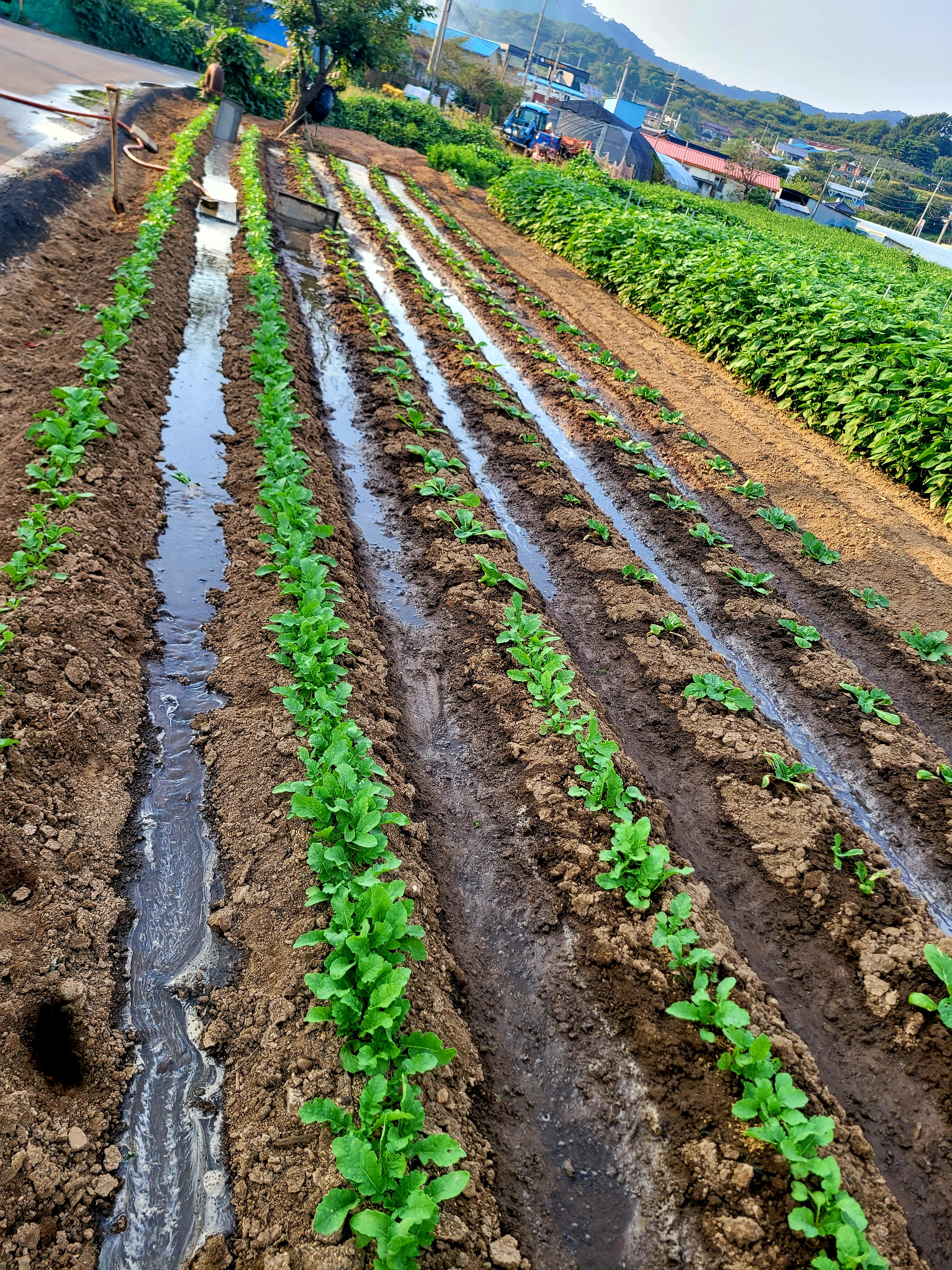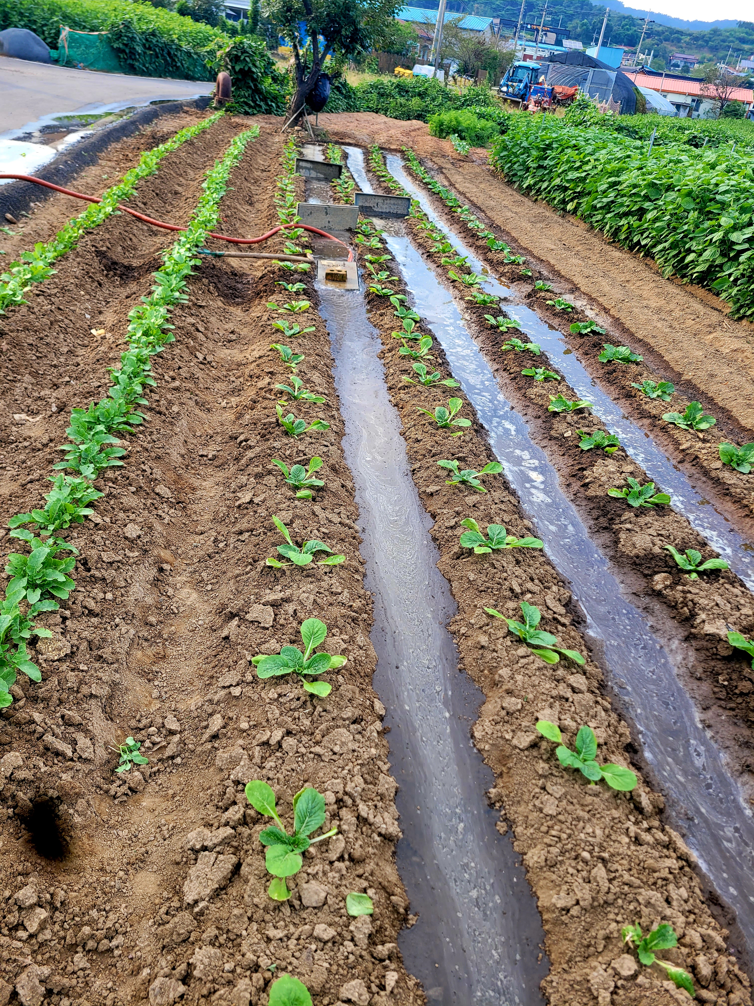 오늘 새벽에 배추밭에 1차 추비를 줬다(요소)