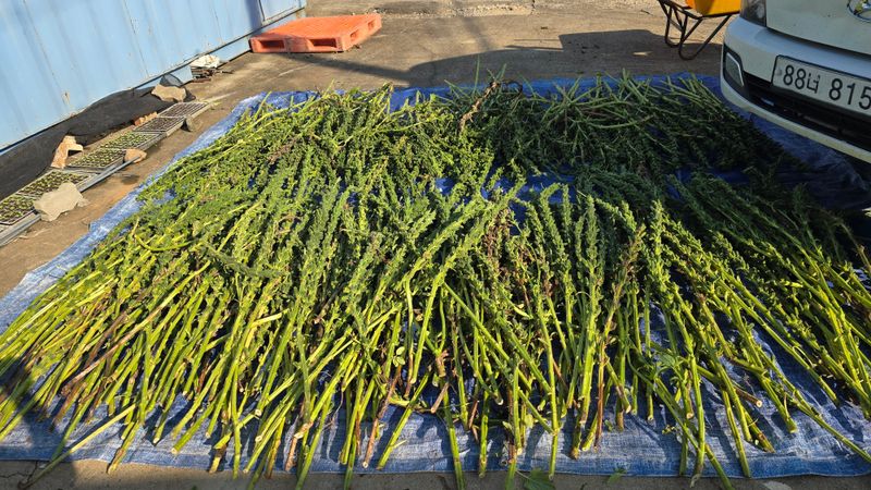 김장배추와무우 살충제 약치고 다가오는 주말에 벌처 작업위한 예초기 점검했다
