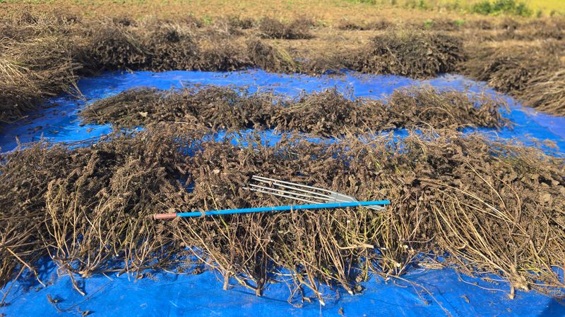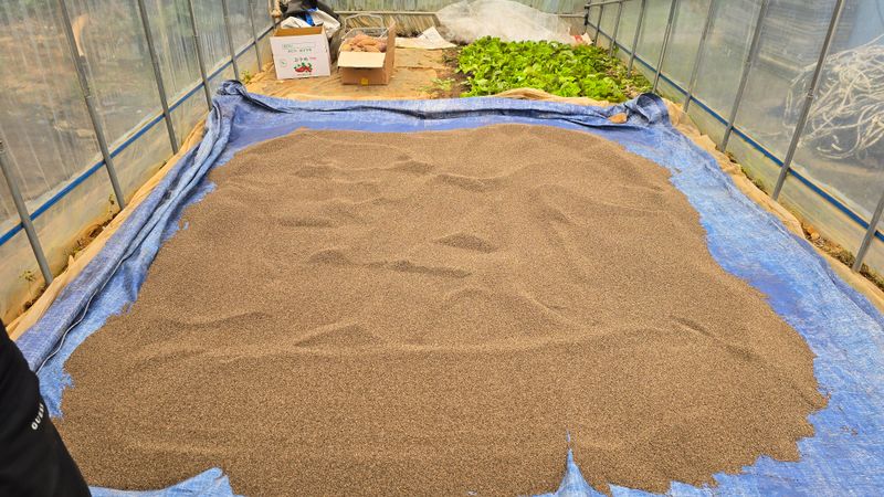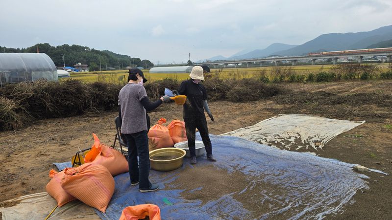 참깨 수확했다 잎을제거후 수확하니 깨끗하고 건조하는데 유리할듯
