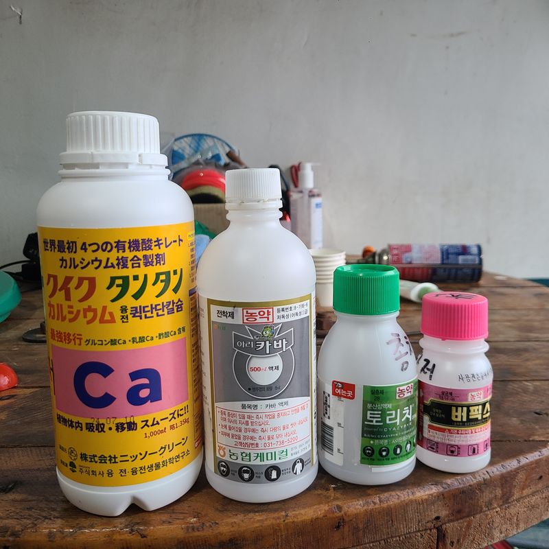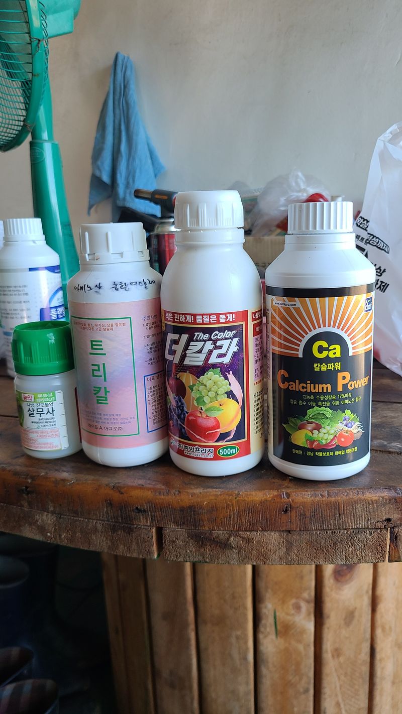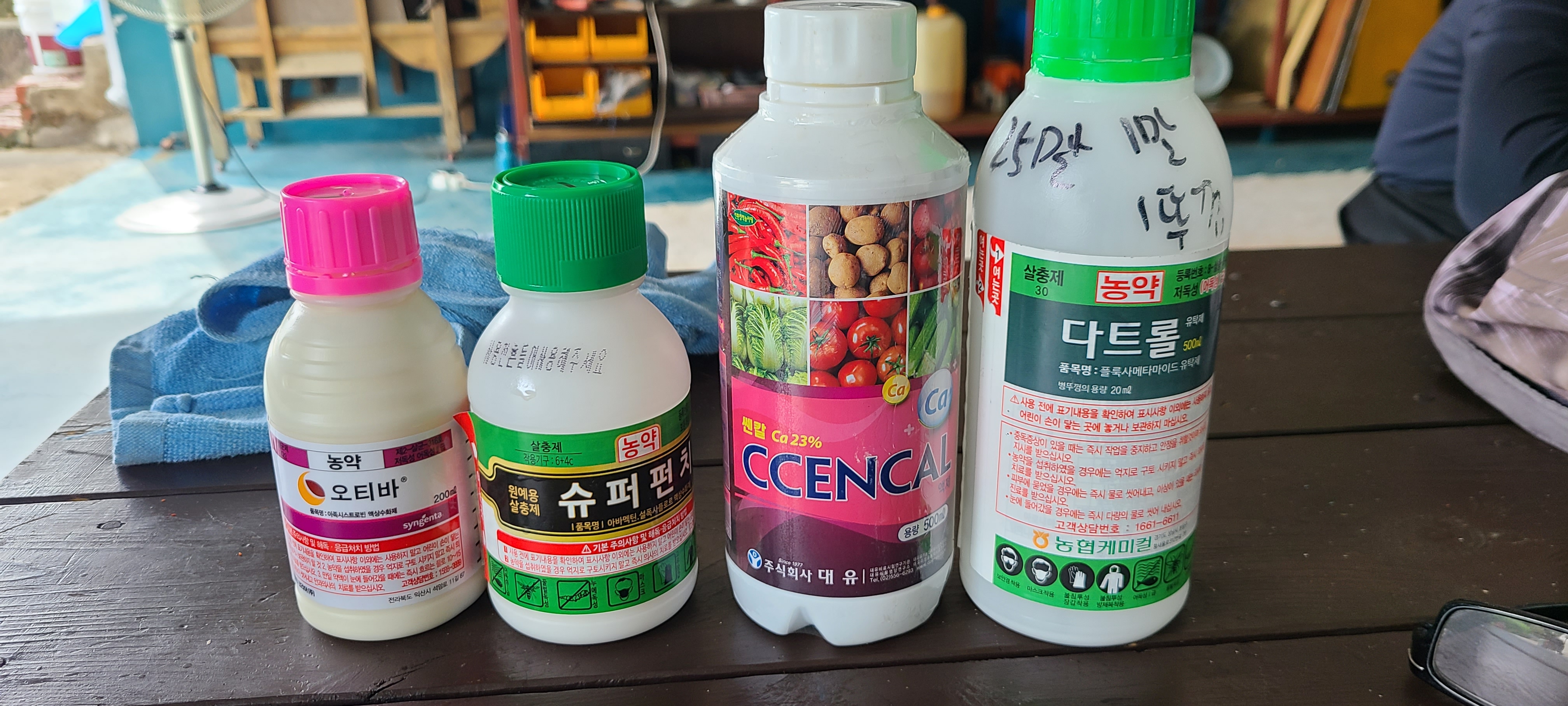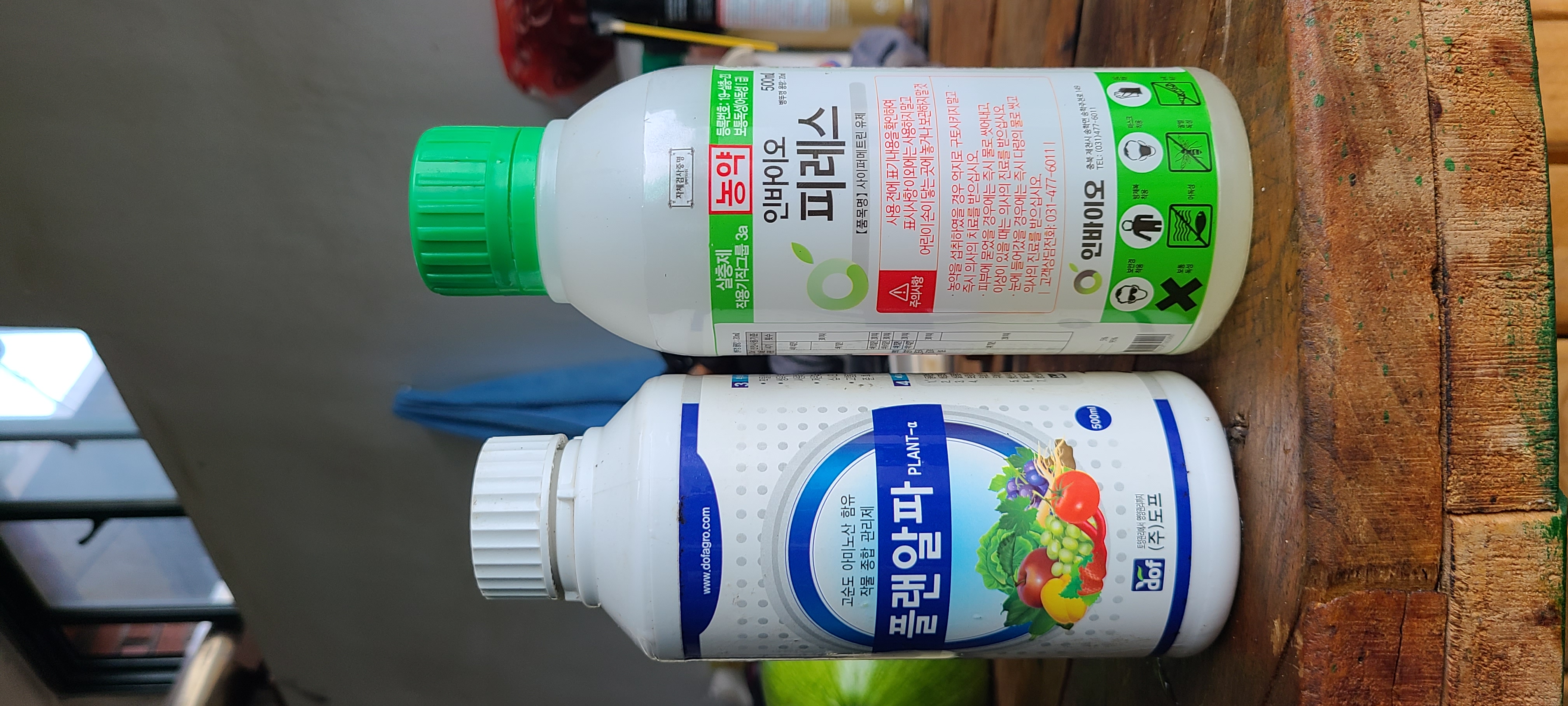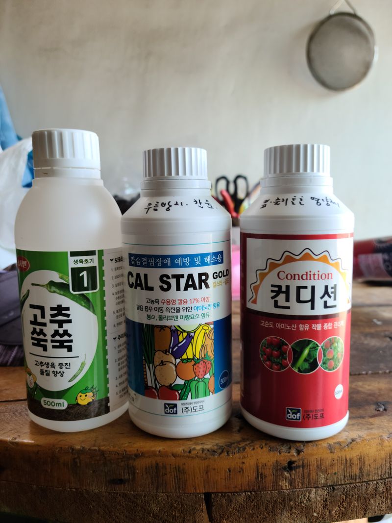 하우스고추 방제 및 영양제 살포 맥스팜 ㅡ30mlㅡ총채,나방 트랜스폼 ㅡ30mlㅡ진딧물 써프라이즈 ㅡ120mlㅡ개화,결실촉진 칼슘파워 ㅡ120mlㅡ무름방지,칼슘