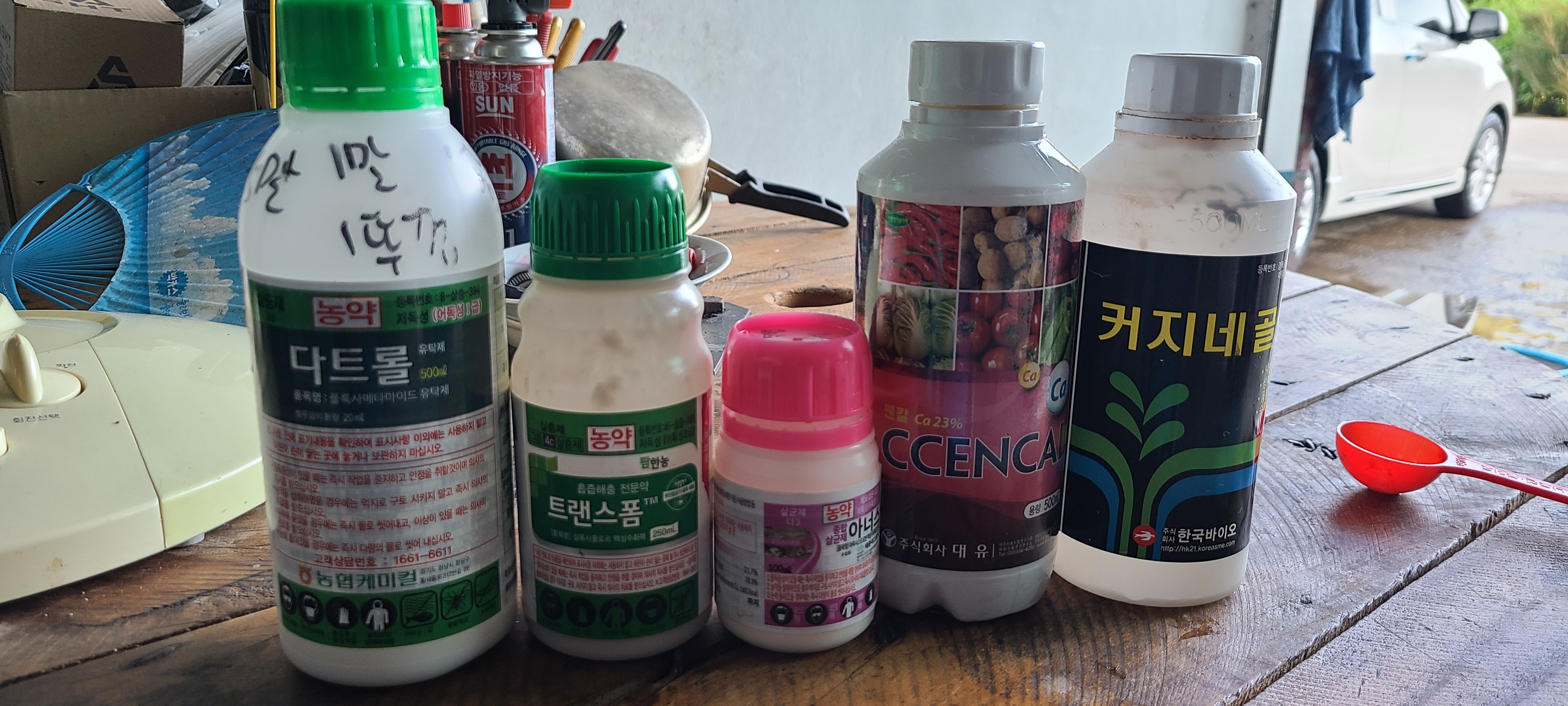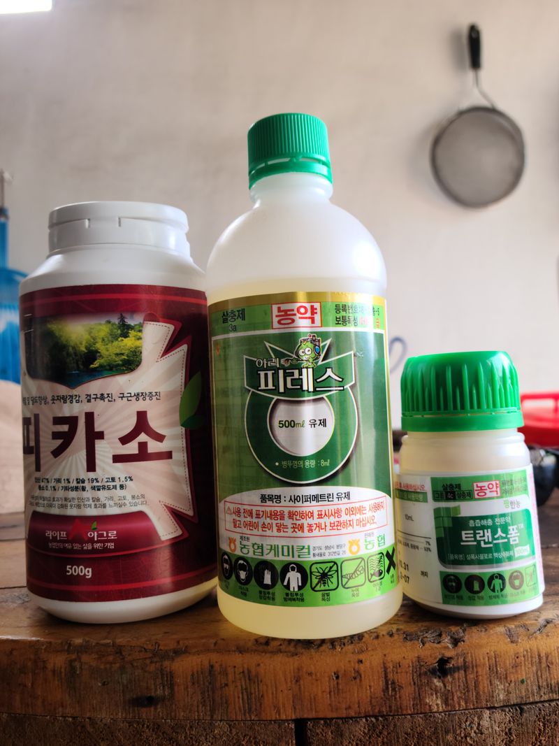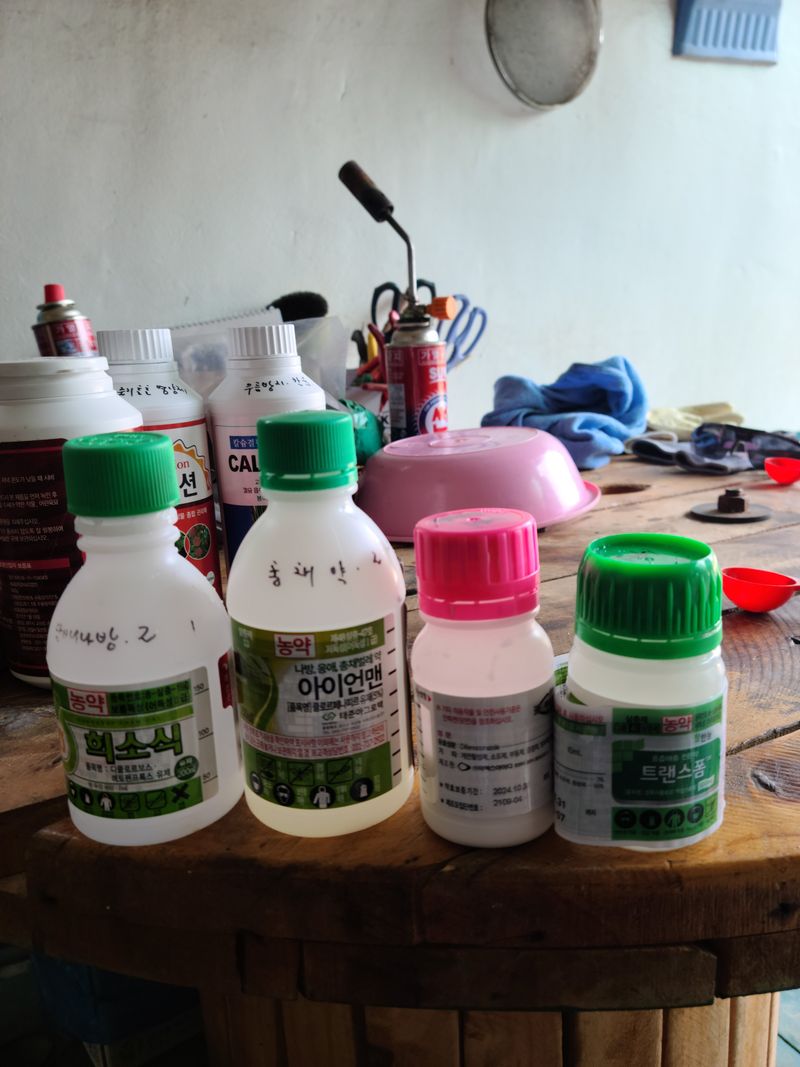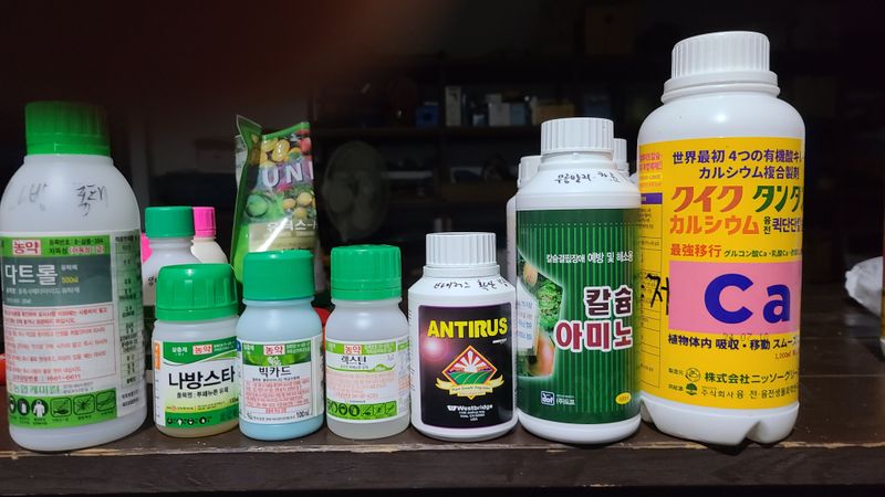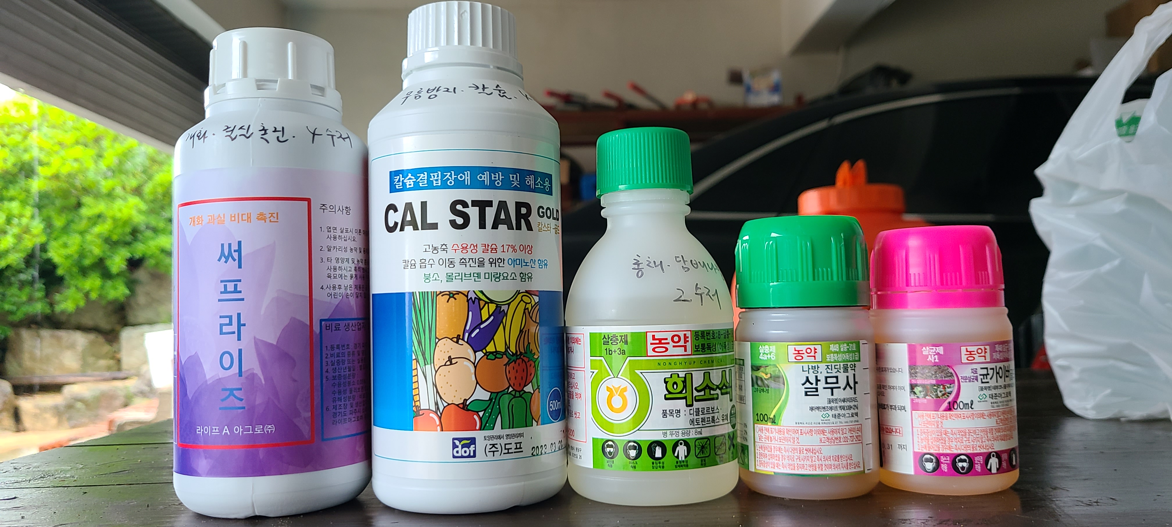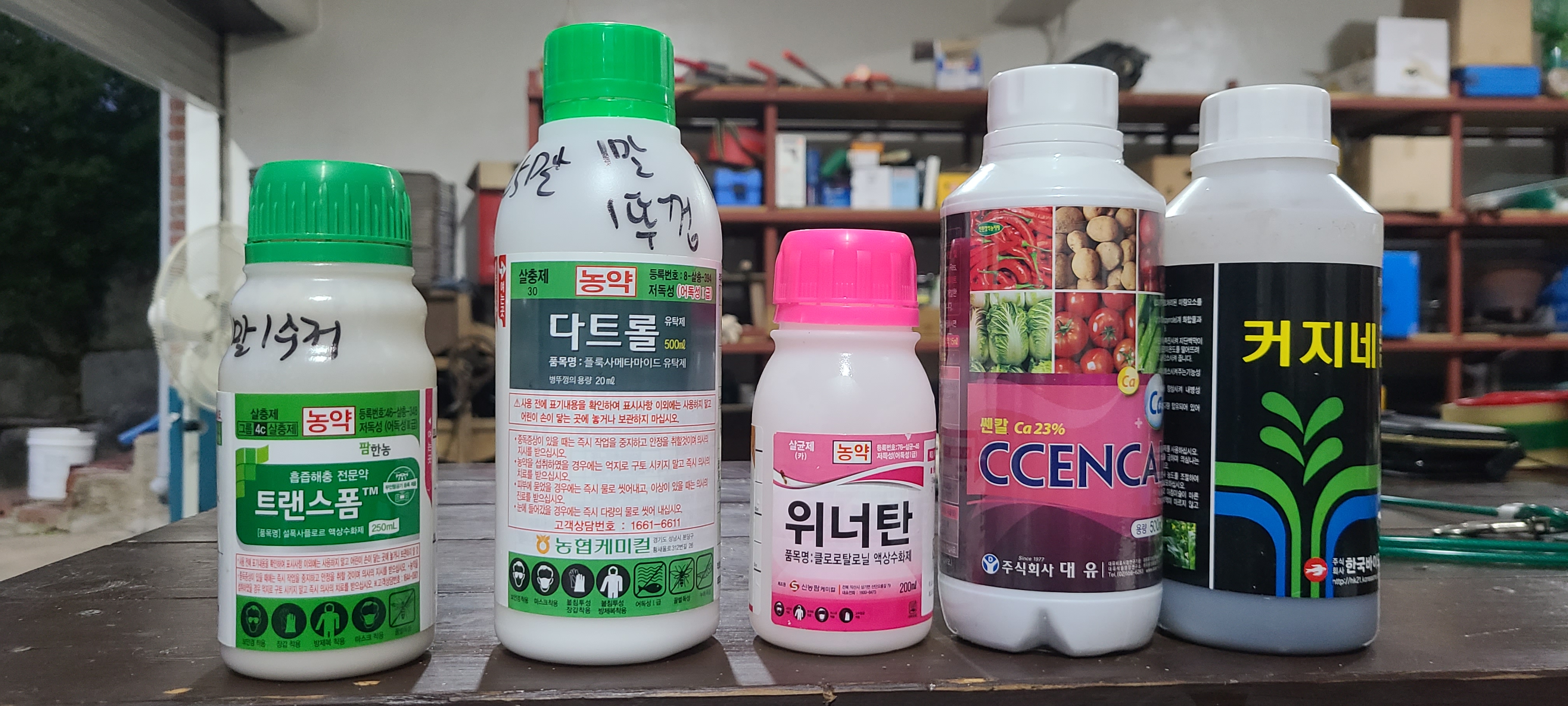 하우스고추 방제 및 영양제 살포 맥스팜 ㅡ30mlㅡ총채,나방 트랜스폼 ㅡ30mlㅡ진딧물 써프라이즈 ㅡ120mlㅡ개화,결실촉진 칼슘파워 ㅡ120mlㅡ무름방지,칼슘
