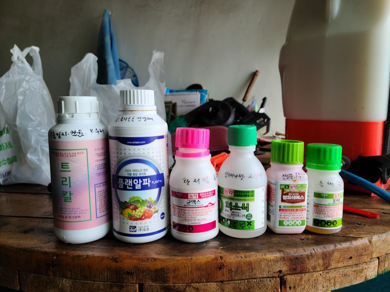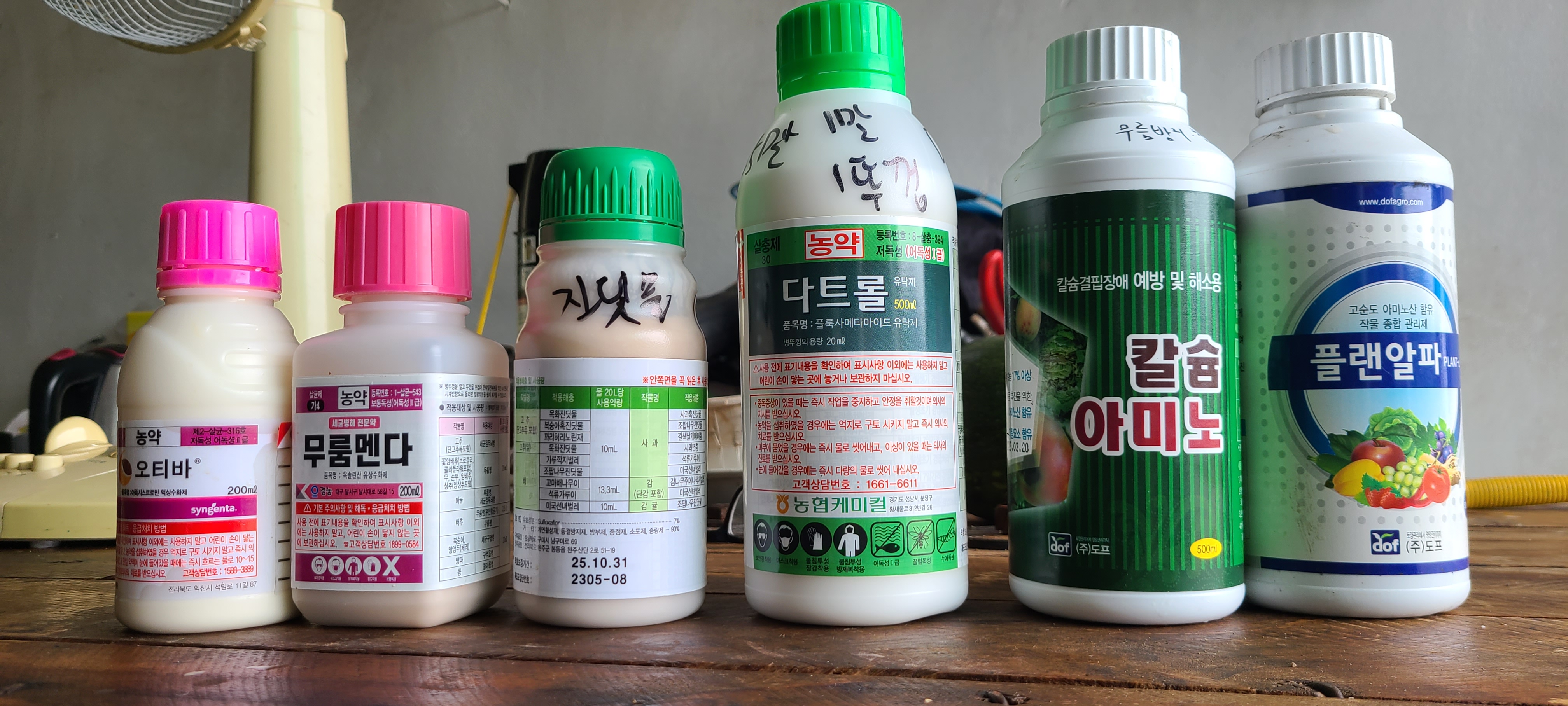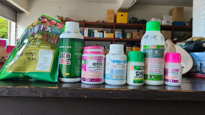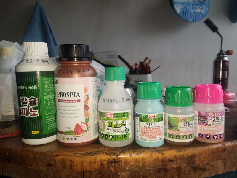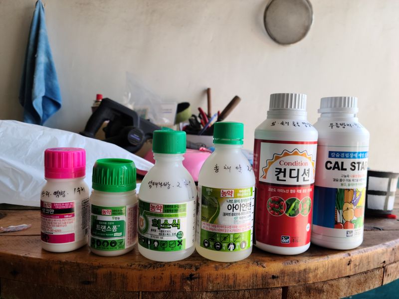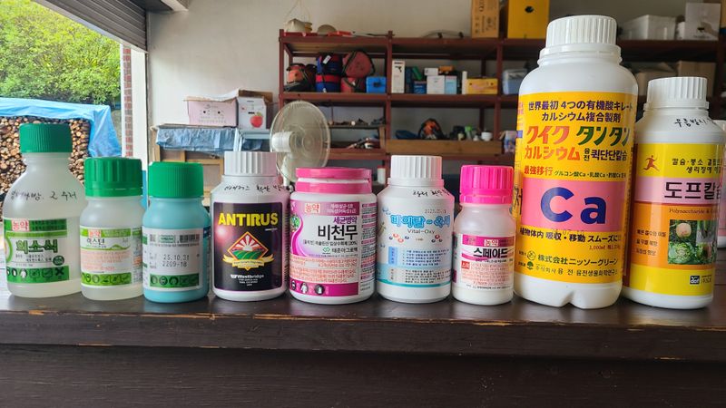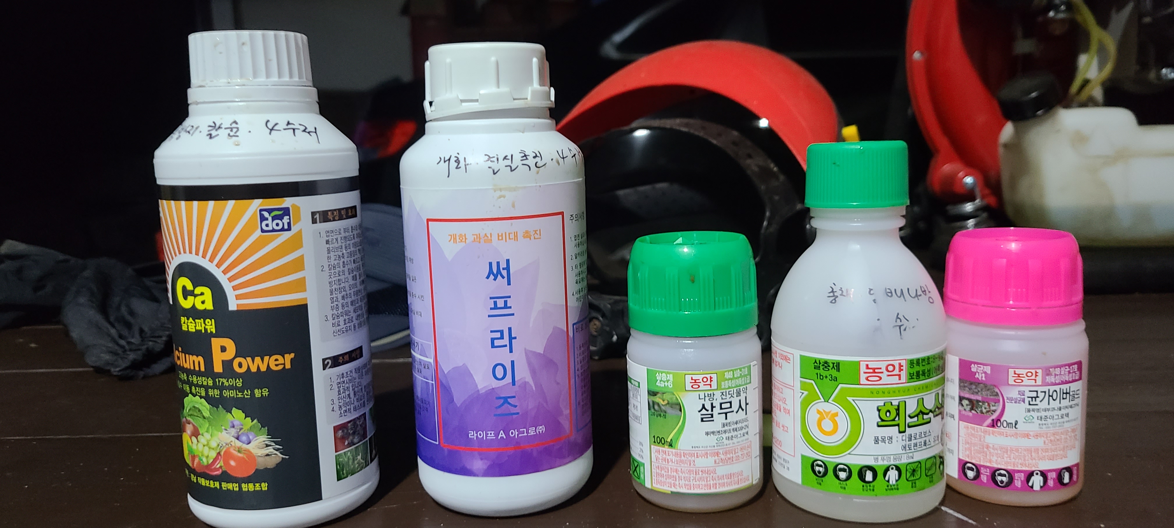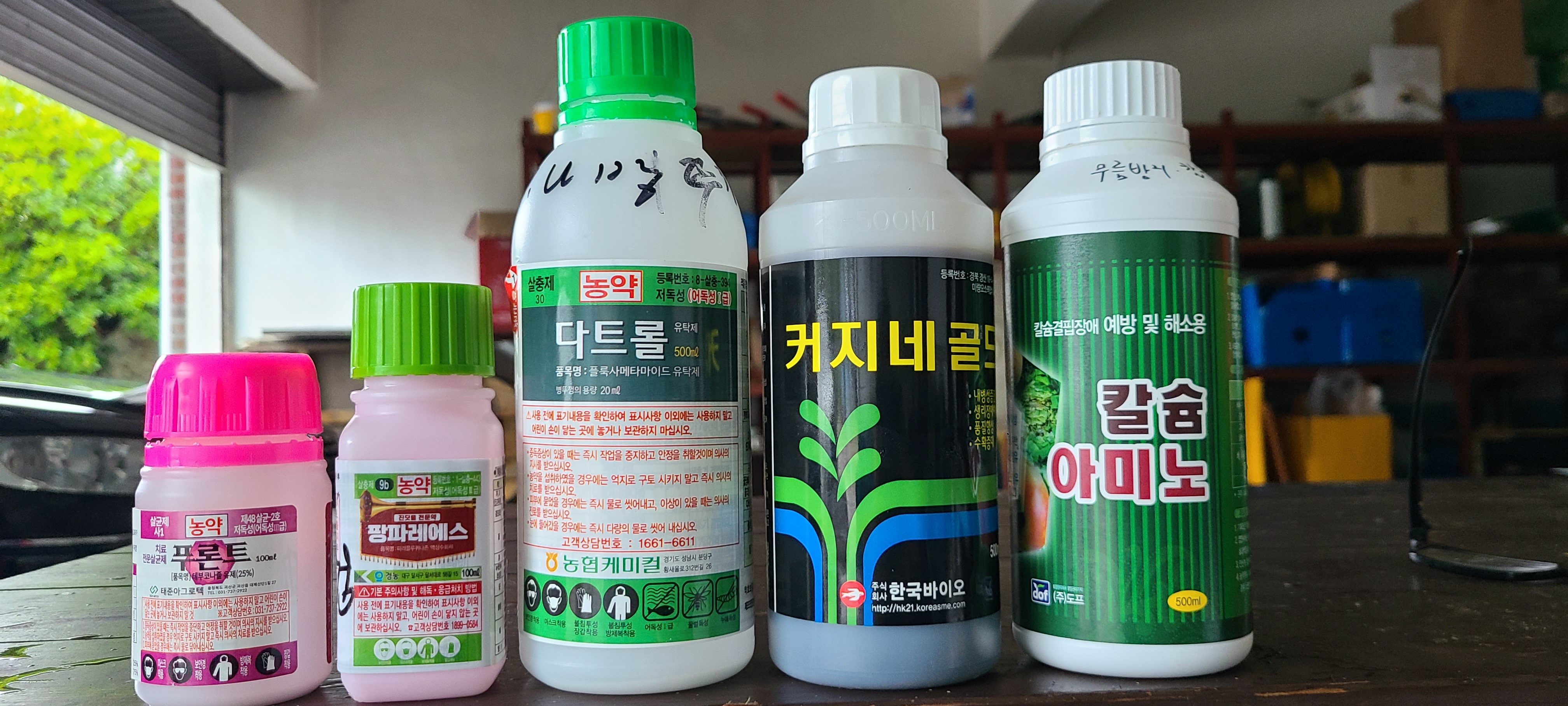 하우스고추 방제 및 영양제 살포 맥스팜 ㅡ30mlㅡ총채,나방 트랜스폼 ㅡ30mlㅡ진딧물 써프라이즈 ㅡ120mlㅡ개화,결실촉진 칼슘파워 ㅡ120mlㅡ무름방지,칼슘