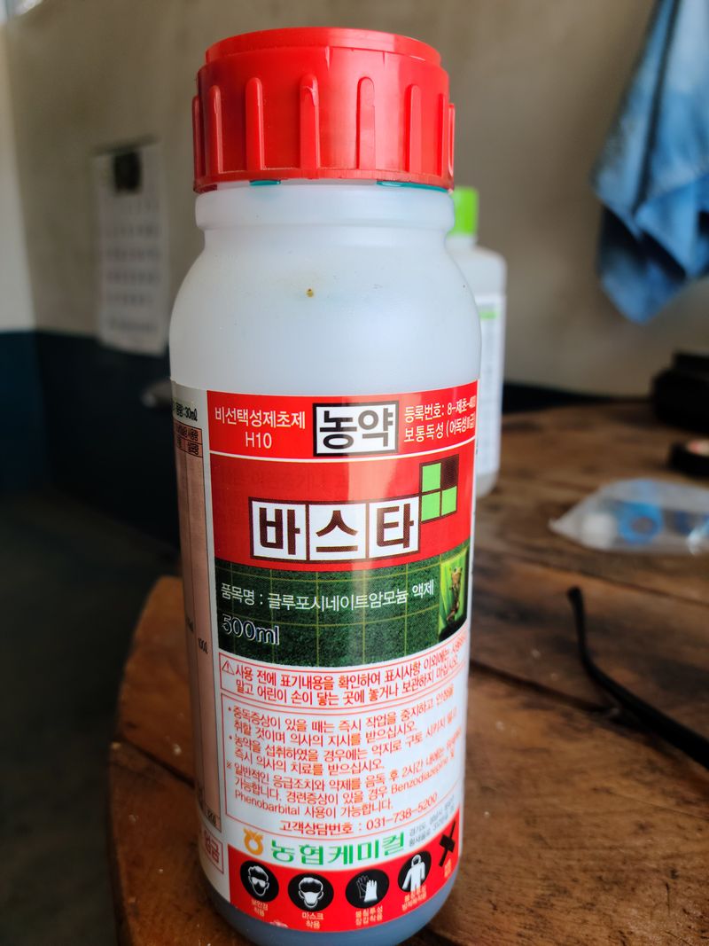 제초제 살포(하우스뒤)ㅡ2통 바스타 ㅡ120ml