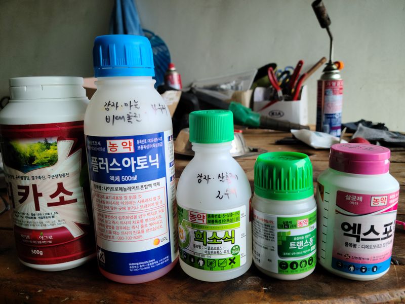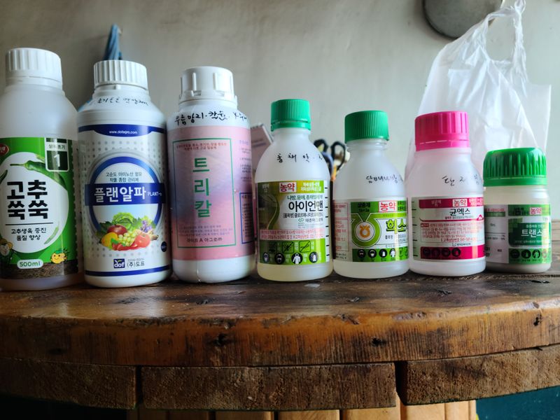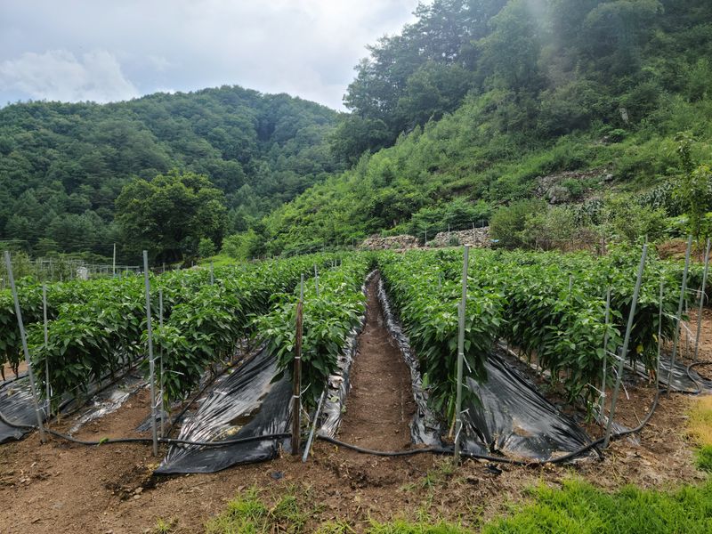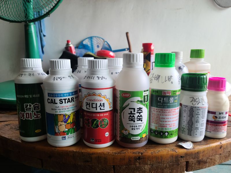 고추밭 주변 제초제 살포 바스타ㅡ60ml 노지 고추밭 방제 및 영양제 살포 균가이버ㅡ60mlㅡ탄저병 희소식ㅡ120mlㅡ총채,담배나방 살무사ㅡ60mlㅡ진딧물,나방 써프라이즈 ㅡ200mlㅡ.개화,결실촉진 칼스타골드ㅡ200ml,ㅡ무름방지,칼슘