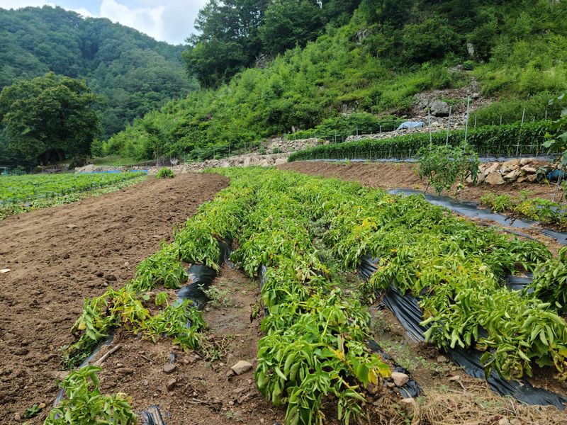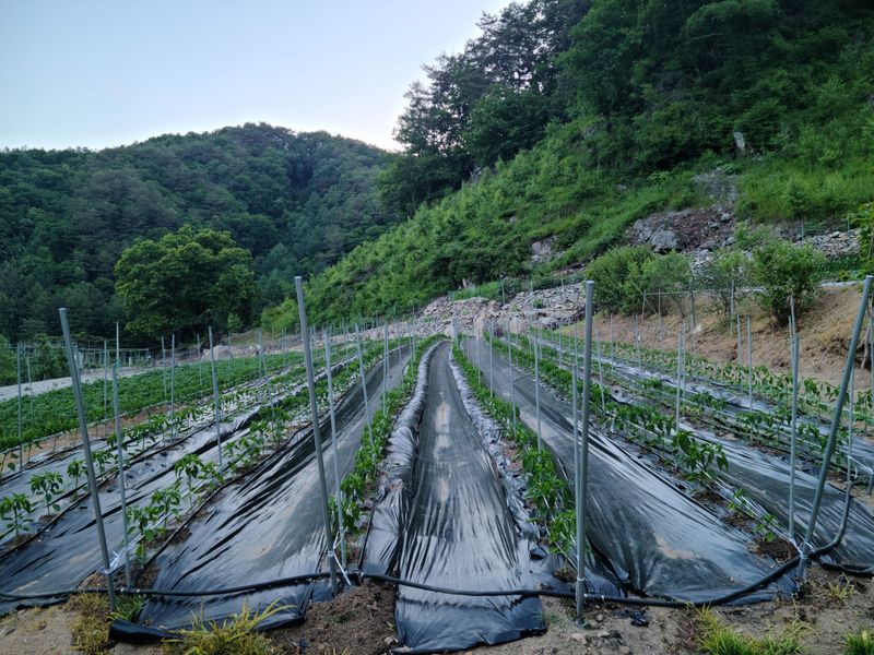 노지고추밭 낙과 제거 하우스 고추밭 물주기