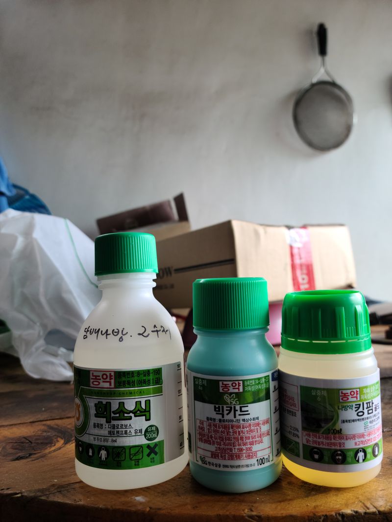 서리태밭 물주기 찰옥수수 수확 및 택배 보내기 하우스 및 노지 고추밭 영양제 및 농약 살포 -8말 컨디션-500ml-아미노산 칼엠지오-500g-무름방지 칼레토-100ml-진딧물 총채카드-100ml-총채 피레바토골드-100ml-담배나방 균펀치-100ml-탄저병